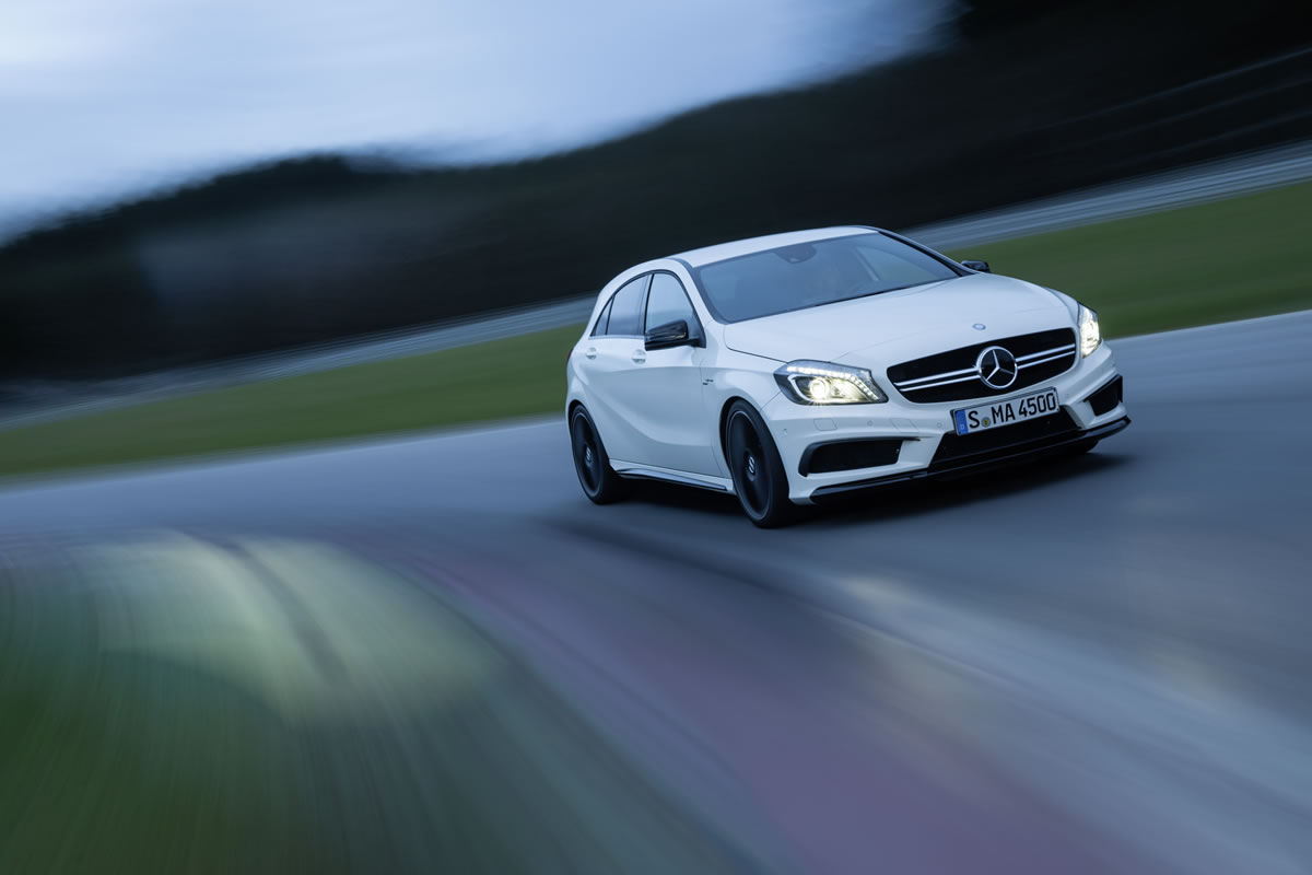 The new Mercedes A45 AMG is the first compact class car in the company’s history to be offered as part of the high-performance AMG group. The A45 AMG is representative of the “AMG Performance 50” strategy for the future, which will run until the 50th birthday of Mercedes-AMG GmbH in 2017. With a maximum output of 265 kW (360 hp) and up to 450 Newton metres of torque, the AMG 2.0-litre four-cylinder turbo engine is the most powerful series production four-cylinder engine in the world. The sensational power density of 133 kW (181 hp) outstrips even the most powerful super sports cars. At the same time, the engine also boasts supreme efficiency and complies with the EU6 emissions standard. The A45 AMG also leads its segment in terms of fuel consumption, running on 6.9 litres per 100 kilometres in NEDC combined mode. These credentials indicate that a further high-performing member of the BlueDIRECT family is now taking to the road. The performance-oriented AMG 4MATIC all-wheel drive onboard the A45 AMG sets new standards in the car’s segment.