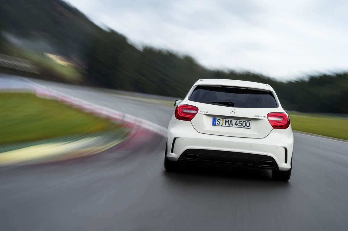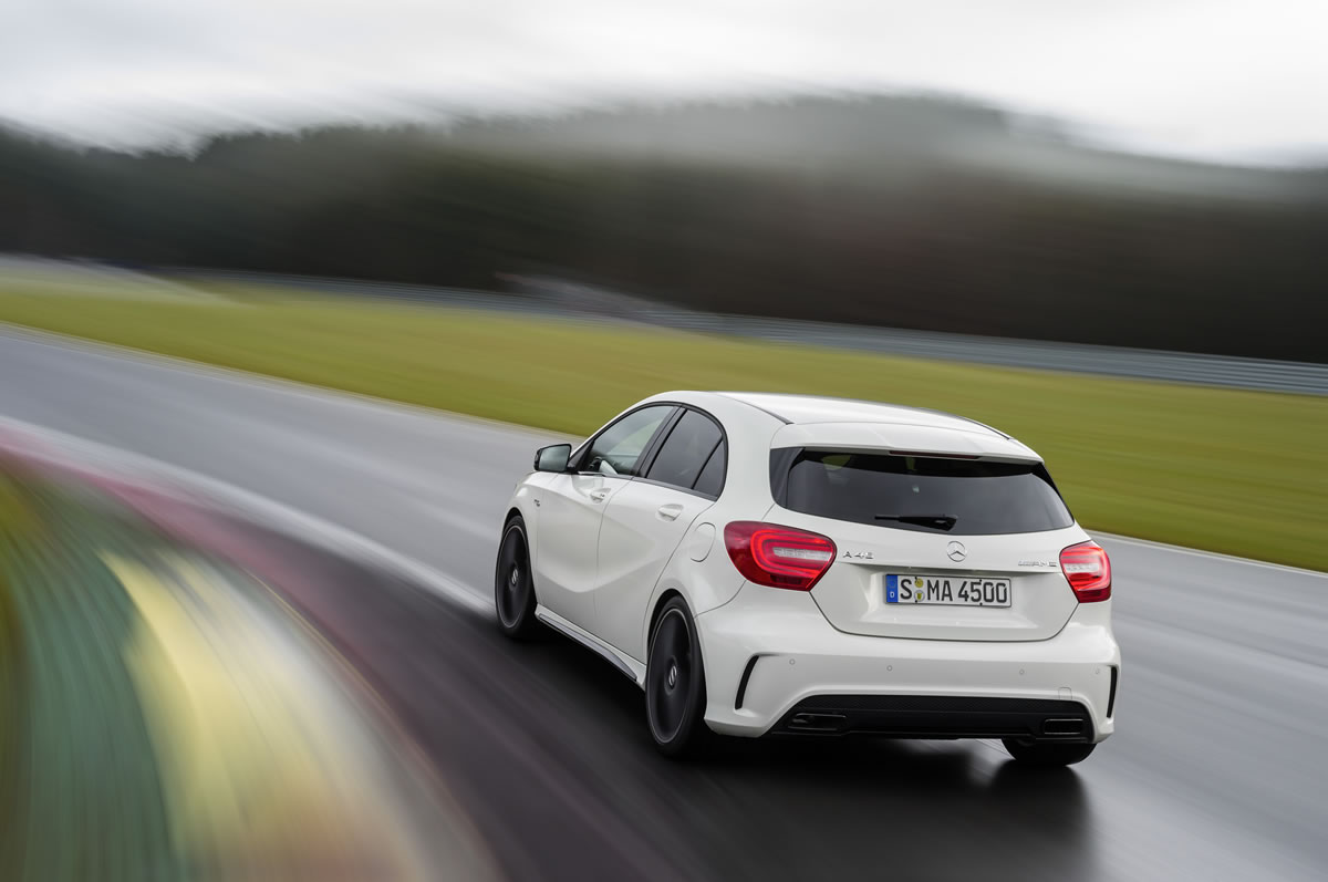 The high power and torque output and the combination with the performance-oriented AMG 4MATIC all-wheel drive as standard lead to extremely dynamic performance: the A45 AMG accelerates from zero to 100 km/h in 4.6 seconds, while its top speed stands at 250 km/h (electronically limited). The specially developed AMG engine is also a model of efficiency – the A45 AMG also leads its segment on this front, with fuel consumption of 6.9 litres per 100 kilometres in NEDC combined mode. This is accompanied by particularly low exhaust emissions: the A45 AMG already complies with the EU6 emissions standard which is not scheduled to enter into force until 2015, combined with the limit for the particle count per kilometre of 6 x 1011 which will be mandatory from 2017.