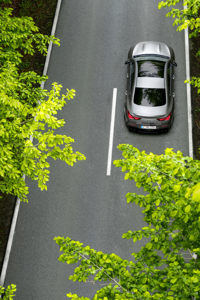 Functions such as alternator management, the ECO start/stop function with fast restarting, the gliding function and a petrol particulate filter are also part of the technology package for the new AMG four-cylinder.