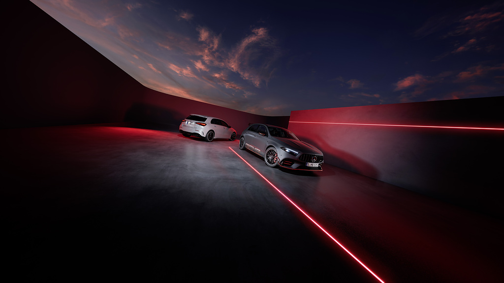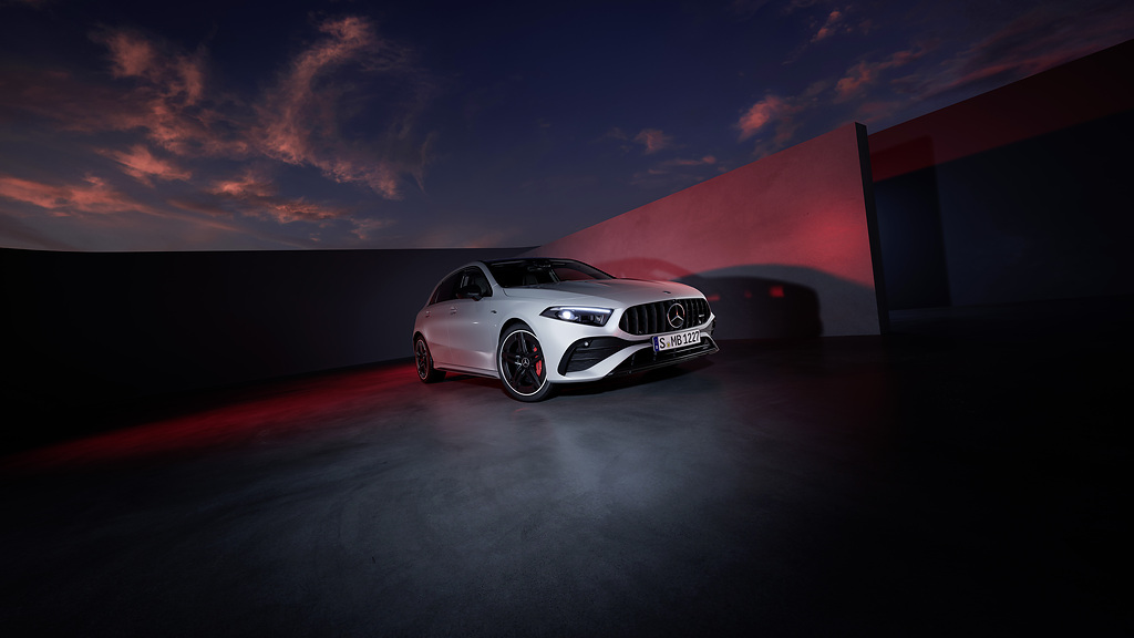 Power and style in a compact format – the new A-Class also makes its debut at Mercedes‑AMG and thus forms the sporty top end of the model series. The top model Mercedes‑AMG A 45 S 4MATIC+ (fuel consumption combined 9.2‑8.8 l/100 km, CO2 emissions combined 208‑200 g/km)2 and especially the Mercedes‑AMG A 35 4MATIC (Hatchback fuel consumption combined 8.6-8.2 l/100 km, CO2 emissions combined 196‑188g/km; Saloon fuel consumption combined 8.5‑8.1 l/100 km, CO2 emissions combined 192‑184g/km)2 benefit from the refresh from Affalterbach. With its revised look, the A 35 moves even closer to the AMG family and is still available as a Hatchback and as a Saloon, while the A 45 S is available as a Hatchback as before.