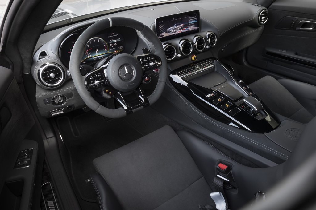 Mercedes-AMG GT R PRO; designo iridium silver magno; Exclusive nappa leather / micro fiber DINAMICA black with contrasting topstitching graphite gray;Fuel consumption combined: 12.4 l/100 km; Combined CO2 emissions: 284 g/km*