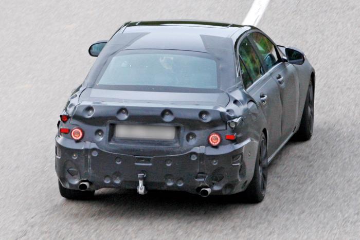 Despite heavy camouflage, the cabriolet’s sleek profile can clearly be seen, although it’s impossible to tell at this stage whether Mercedes is planning to use a fabric roof, or a folding hardtop. Judging by the compact rear end, though, a fabric roof – that’s both lighter and cheaper to produce than a metal one – seems most likely.