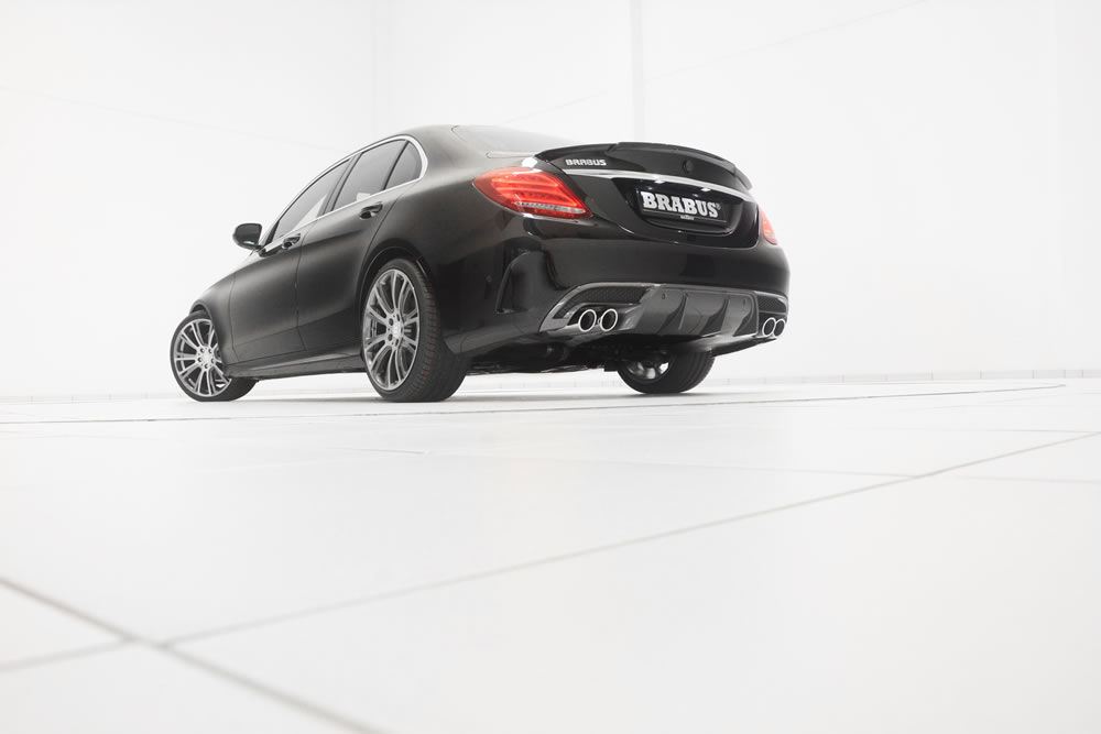 Mercedes-Benz offers the new C-Class of model series W/S 205 in a variety of design and equipment lines. BRABUS already offers tailor-made bodywork components for the C-Class in standard specification and for the models of the AVANTGARDE and EXCLUSIVE lines. In addition, all model variants can also be ordered ex-factory with AMG Line body styling. To add further dynamics to the sporty lines of these bodywork components, the BRABUS design team has now also developed detachable components for this variant. They not only give the car an even sportier appearance, they also reduce negative lift on the front and rear axle at high speeds, and consequently are a factor in even further optimized handling stability. All components are manufactured in OEM quality from high-grade PUR plastics.