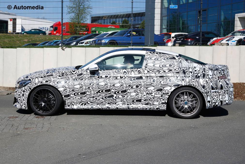 Seen here being put through its paces by engineers, the hot two-door will hope to replicate the success of the BMW M4, which is predicted to sell more than the M3 saloon over time. The C63 has always sold better as a coupe, too.