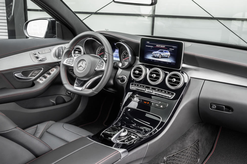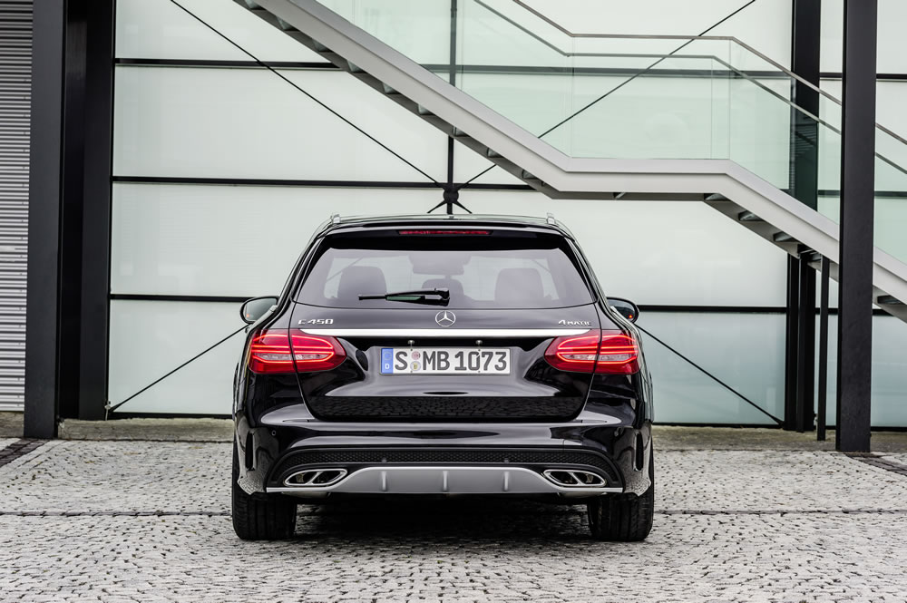 The new 3.0-litre twin-turbo V6 engine is part of the BlueDIRECT engine family from Mercedes-Benz. Technical advances including a modified boost pressure allowed the AMG engineers to increase the engine’s power output and torque. With 270 kW (367 hp) and 520 Newton metres the V6 engine sets new standards in its segment – which is evident in the convincing performance: a sprint time from zero to 100 km/h of 4.9 seconds (Estate: 5.0 seconds) underscores the sporty temperament of the C 450 AMG 4MATIC. With a combined fuel consumption of 7.6 litres per 100 kilometres and CO2 emissions of 178 grams per kilometre (Estate: 7.7 litres and 180 g CO2 per km) the new top-of-the-line V6 model defines an absolute top position in the competitive environment.