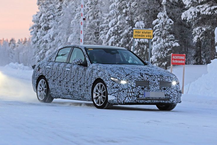 First look at the tightly guarded upcoming Mercedes-Benz C-Class. Despite it’s dressing, you can see the new C-Class will receive a more streamlined body makeover to match the rest of the family. And based on the rear windows and doors, perhaps a growth spurt as well, growing slightly longer and providing a bit more rear legroom for passengers.