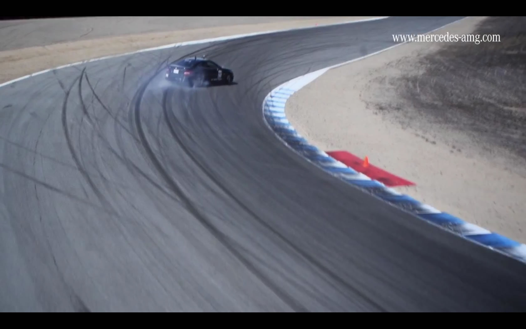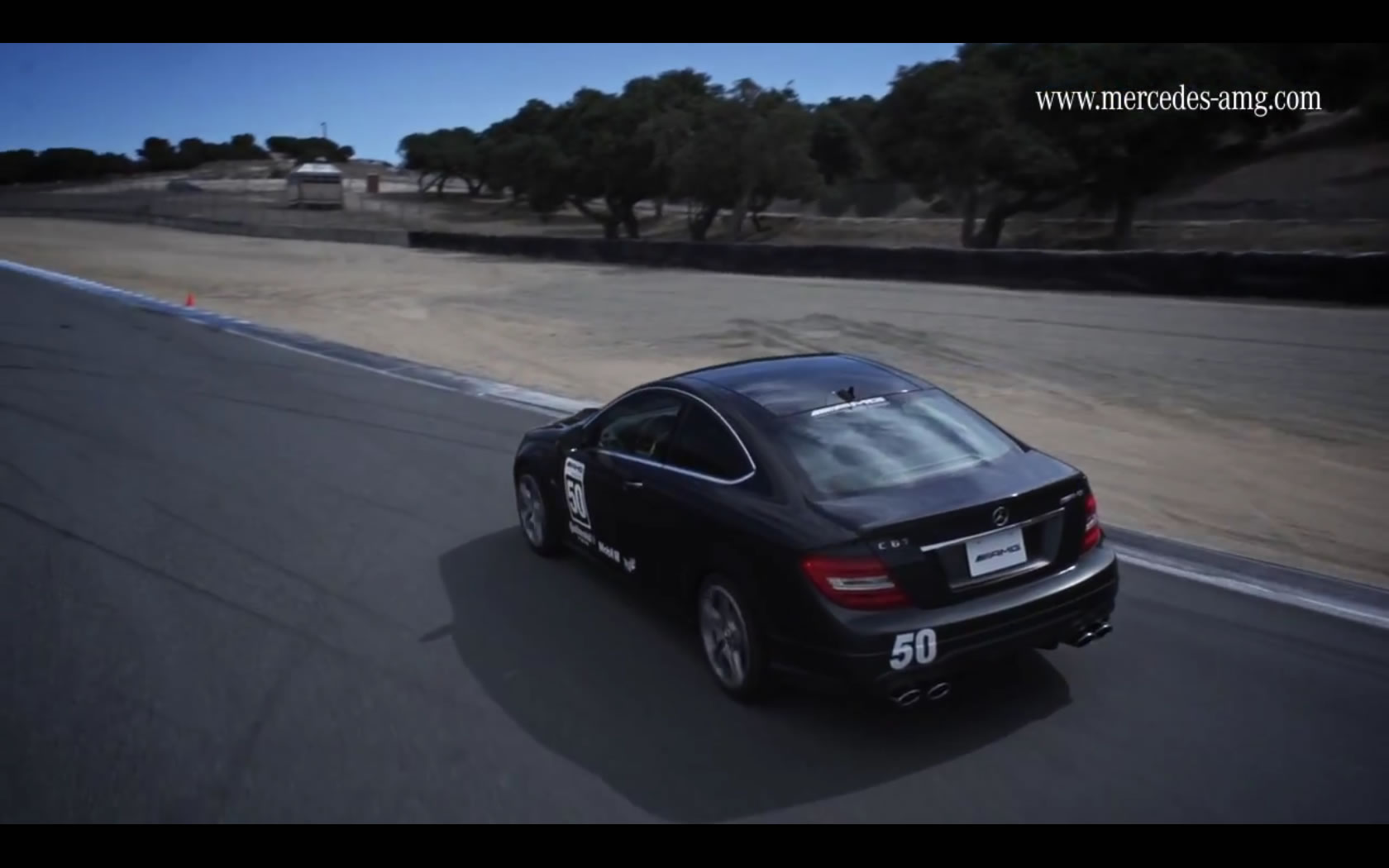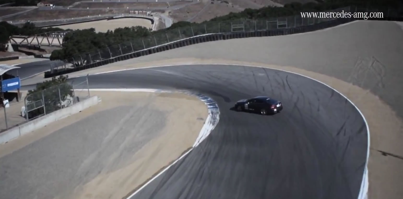 As a way of celebrating 2 million video views on YouTube, Mercedes AMG is thanking their fans with a video. And not just any video, mind you, but a video of the insanely great C63 AMG Coupe drifting around the Corkscrew at Laguna Seca.