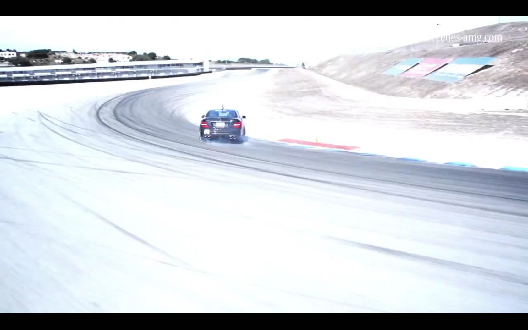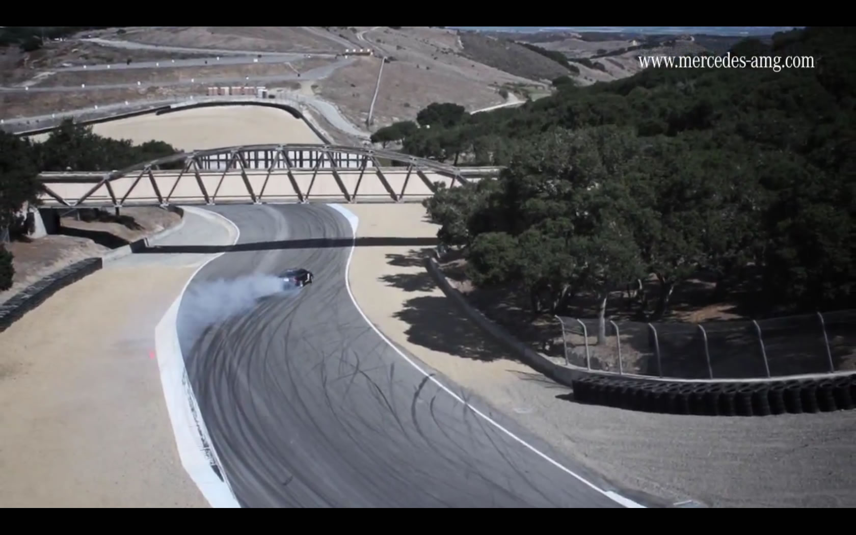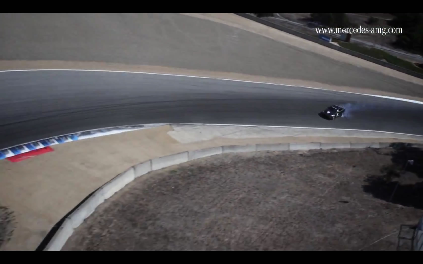 As a way of celebrating 2 million video views on YouTube, Mercedes AMG is thanking their fans with a video. And not just any video, mind you, but a video of the insanely great C63 AMG Coupe drifting around the Corkscrew at Laguna Seca.