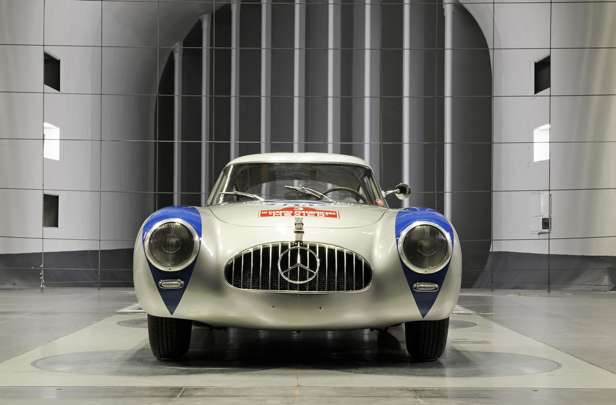The most important results: the 300 SL (W 194 series) racing car has a drag coefficient cD = 0.376. Meaning, it is around 20 percent better than its comparison vehicle, the 300 S (W 188 series), for which a value of cD = 0.462 was obtained. This result underscores the efforts of the engineers and designers back then to attain a low drag coefficient as an important prerequisite for the SL’s racing success. The car then went on to achieve several wins in the course of the 1952 racing season at different international motorsport events, for example at Le Mans or in the Carrera Panamericana in Mexico. The 300 SL (W 198 I) series-production sports car returned a drag coefficient value of cD = 0.389.