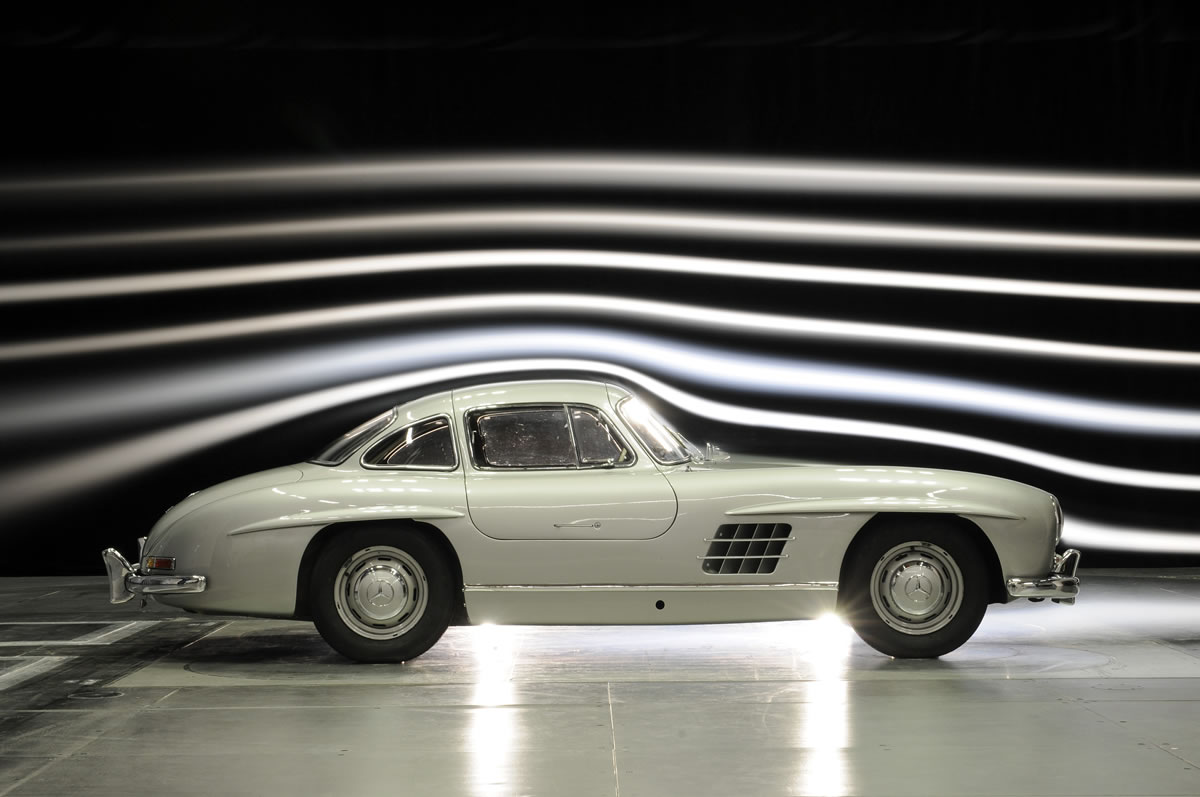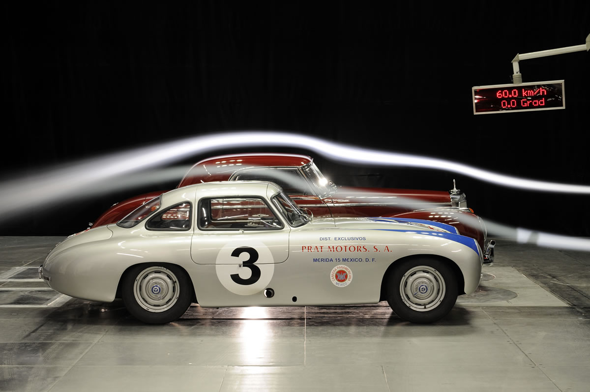 Historical vehicles, on the other hand, are seldom guests in the wind tunnel, their development is complete and there’s nothing you can change now. For reasons of historical interest, in January 2012 Mercedes-Benz Classic examined two SL model series in the company’s own wind tunnel at its Stuttgart-Untertürkheim plant using modern-day measuring methods. The first was a SL (W 194 series) from 1952, as well as the 1954 series-production 300 SL (W 198 I series) sports car. In order to have a contemporary comparison vehicle, a 1951 Mercedes-Benz 300 S (W 188 series), a luxurious, sporty touring car, was also examined. This vehicle had lent some of its technology to the first post-war Mercedes-Benz sports car.