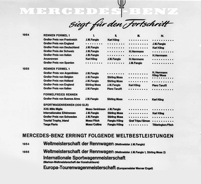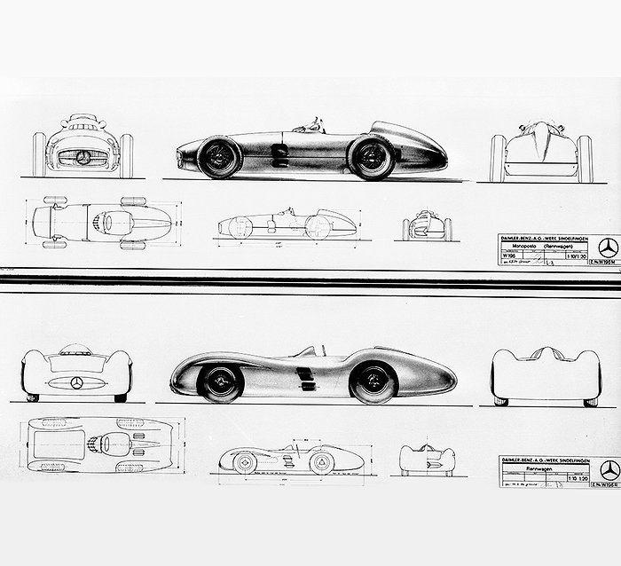 Five-times world champion Juan Manuel Fangio, who formed a man-machine unit with his W 196 R in his active years, was famous not only for his gifted driving style but also for his dry sense of humo