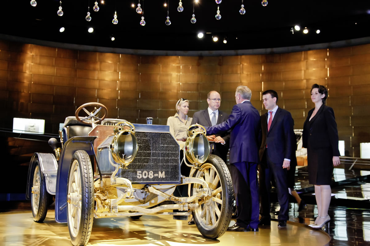 As part of their two-day visit to Germany, H.S.H Prince Albert II of Monaco and H.S.H. Princess Charlène today toured the Mercedes-Benz Museum in Stuttgart. During an exclusive guided tour of the exhibition the princely couple was able to experience a unique journey through time, from the very beginnings of automotive industry and on into the future. H.S.H Prince Albert II, himself the owner of a superb collection of classic and young classic cars, was clearly delighted to see the Museum’s unique and comprehensive display of more than 125 years of automotive history. As well as admiring the fascinating collection of classic cars bearing the three-pointed star, the Prince showed a particular interest in the research and development work undertaken by Mercedes-Benz in the field of sustainable mobility.