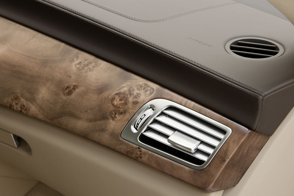 An extravagant and unique feature for the automotive industry is the designo wooden luggage compartment floor, which serves to underscore the hand-finished nature of the interior. Cherry tree wood is a classic among fine wood species and contrasts perfectly with the inlaid smoked oak and aluminium rails. This affords the luggage compartment a touch of elegance normally found on yachts, combined with the exciting worlds of technology and precision craftsmanship. The wood is characterised by its flexibility and elasticity, as well as its density and fine texture. For the luggage compartment floor made