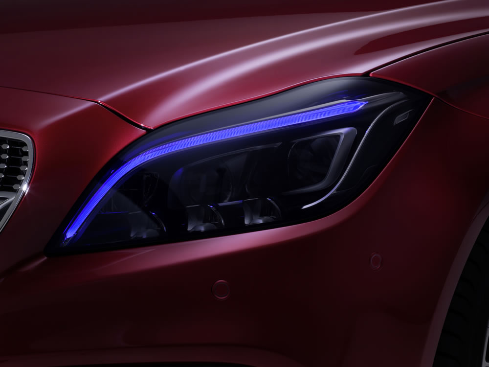 The camera-based Adaptive Highbeam Assist Plus provides the information for the illumination. If it detects illuminated oncoming vehicles or vehicles ahead, it drives each of the individual 24 high-performance LEDs in a matrix light source electronically so that individual areas of the road are specifically masked in accordance with the particular situation. The headlamp control function combines the matrix light source with the tried-and-trusted technology of the LED Intelligent Light System, thus increasing the precision of today’s matrix light sources and setting up a main beam gap with minimal width. This prevents other drivers from being dazzled, while drivers in the CLS Coupé and in the CLS Shooting Brake always benefit from the best possible – in other words brightest illumination of the road and road verges. The anti-dazzle main beam can be switched on permanently. Thus the new MULTIBEAM LED headlamps open up new dimensions in safety from which other road users can mutually benefit.