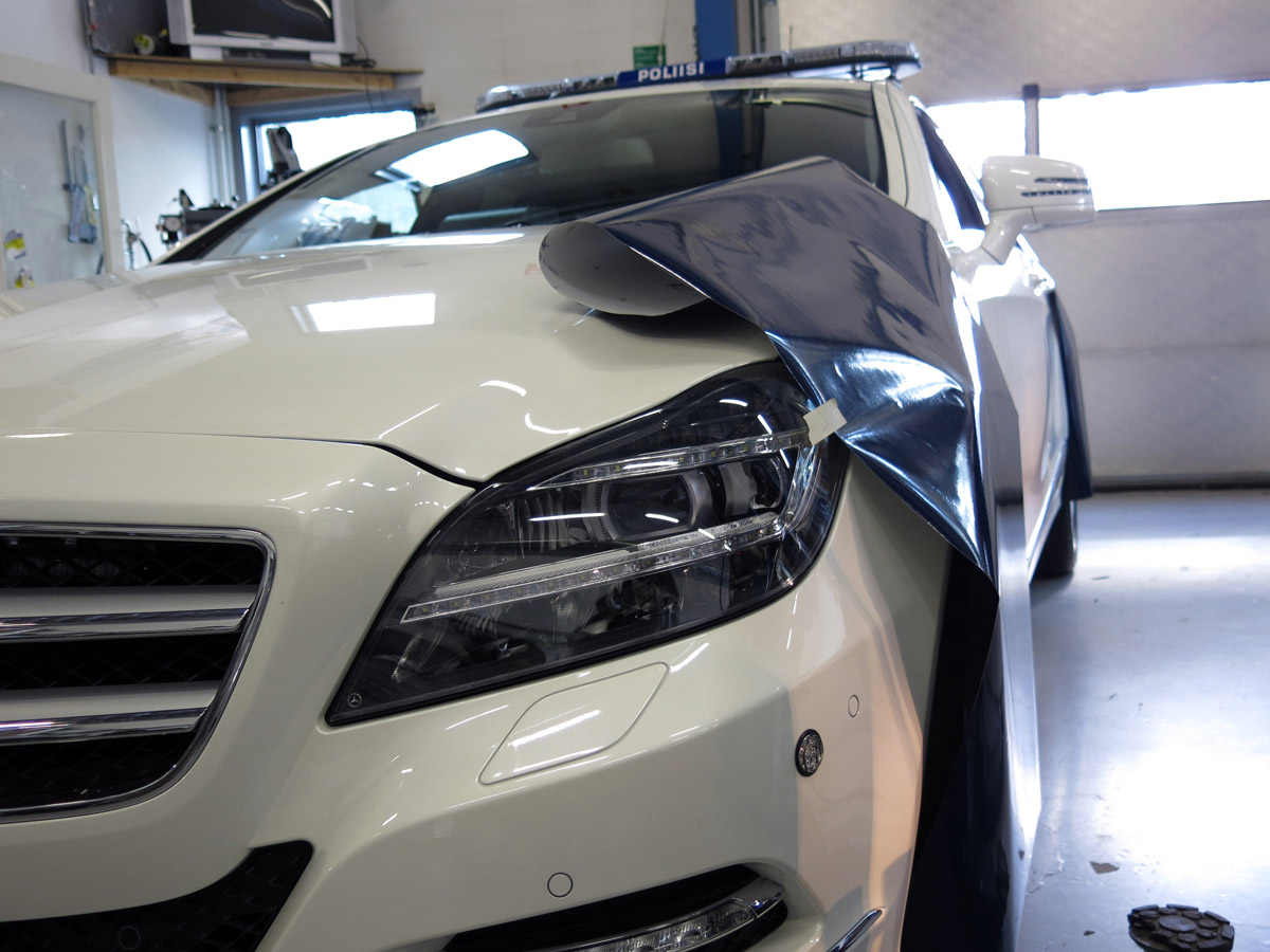 Check out the video (if you don’t speak Finnish, skip in 36 seconds for the car in action) and photo gallery below for a look at the Mercedes CLS Shooting Brake transformation for passenger car to Police vehicle.