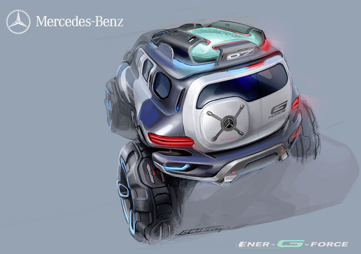 As an environmentally friendly SUV, the Ener-G-Force, which Mercedes-Benz is presenting in Los Angeles as a design study, meets these requirements and would be fully capable of supporting police and emergency services in every corner of the world. Gorden Wagener, Director of Design at Mercedes-Benz Cars: “The Ener-G-Force is the vision of an off-roader that, while reflecting tomorrow’s adventures, also invokes the genes of the Mercedes-Benz off-road icon, the G model. Modern and cool, it could also be a clue about a new beginning for the off-road design idiom of Mercedes-Benz”.