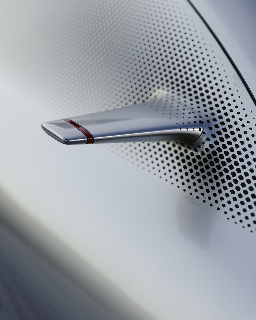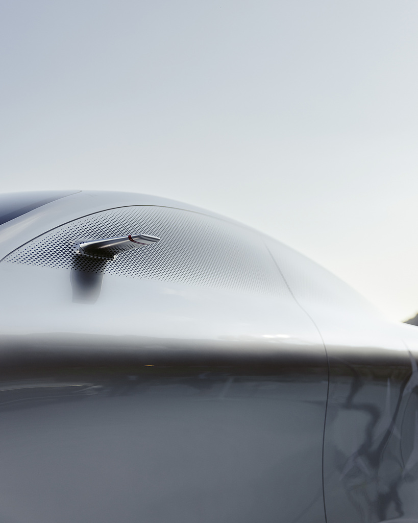 The concept car is characterised by flowing, beautifully formed surfaces. Joints and shut lines are reduced to a minimum, and the rear and side windows are painted in the same Alubeam silver as the car itself. The result is an overall look that reinforces the impression of a monolithic sculpture.