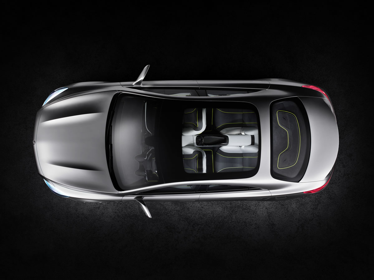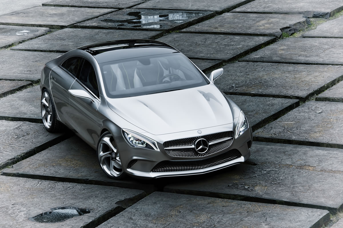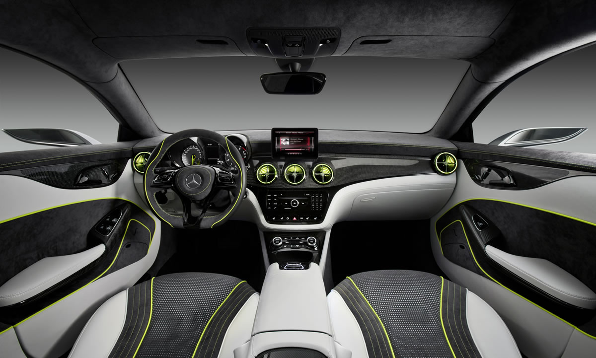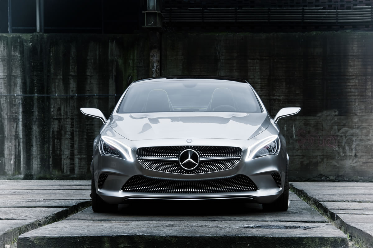 Among its most striking features is the way the hood, with its powerdomes, is set right into the front end assembly, as well as its diamond-look grille, which follows through on design cues set by the Concept A-CLASS. The paint finish of the concept vehicle is in Alubeam – a color that helps to emphasize the sculptural quality of its lines.