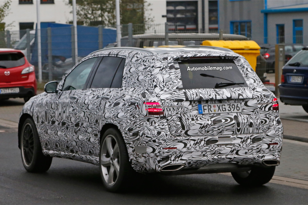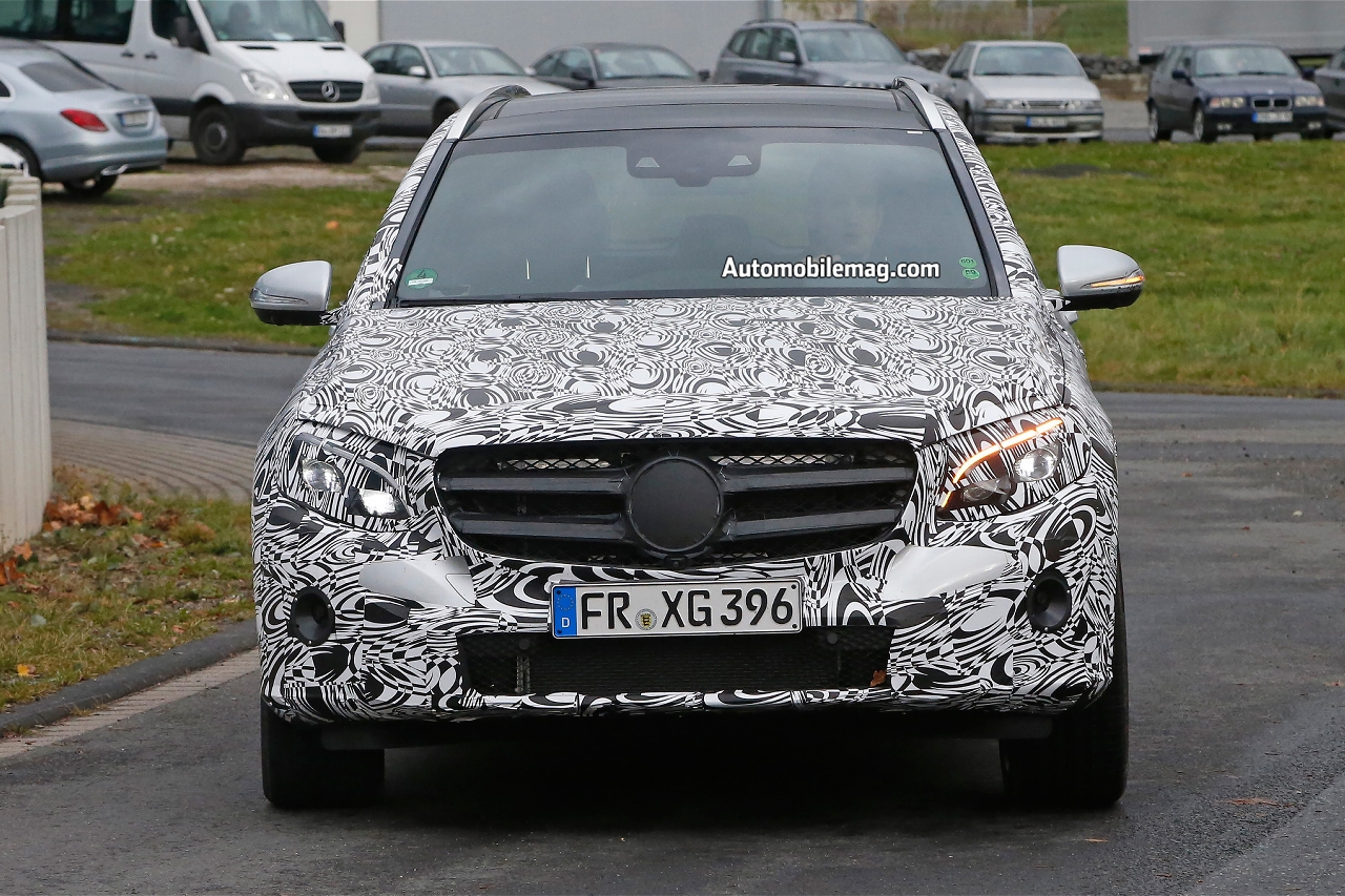 Although the prototype is heavily camouflaged, we can see the headlights more resemble those on the C-Class sedan and the lower front fascia has round air inlets at each corner. A black grille sits prominently up front. From the side, the new GLC-Class has a less upright profile compared to the current GLK-Class. Around back, revised taillights, rear fascia, and reshaped exhaust tips can be made out.
