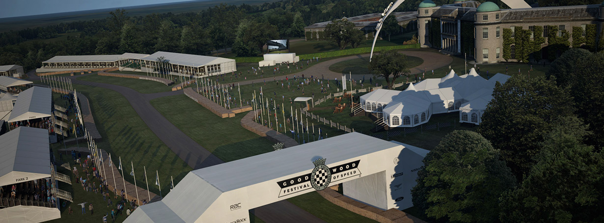 On the Thursday of the Festival of Speed, Yamauchi showed the world that the possible can still be stretched a little bit further. At the same time that the Central Feature was unveiled on the lawn in front of Goodwood House, there was an update available for “Gran Turismo® 6”: the sculpture by British artist Gerry Judah, with the W25 Silver Arrow and Lewis Hamilton’s Mercedes-Benz AMG Petronas W04 Formula 1, is now not only located in Sussex, but also exists virtually on the Playstation Goodwood hillclimb course.