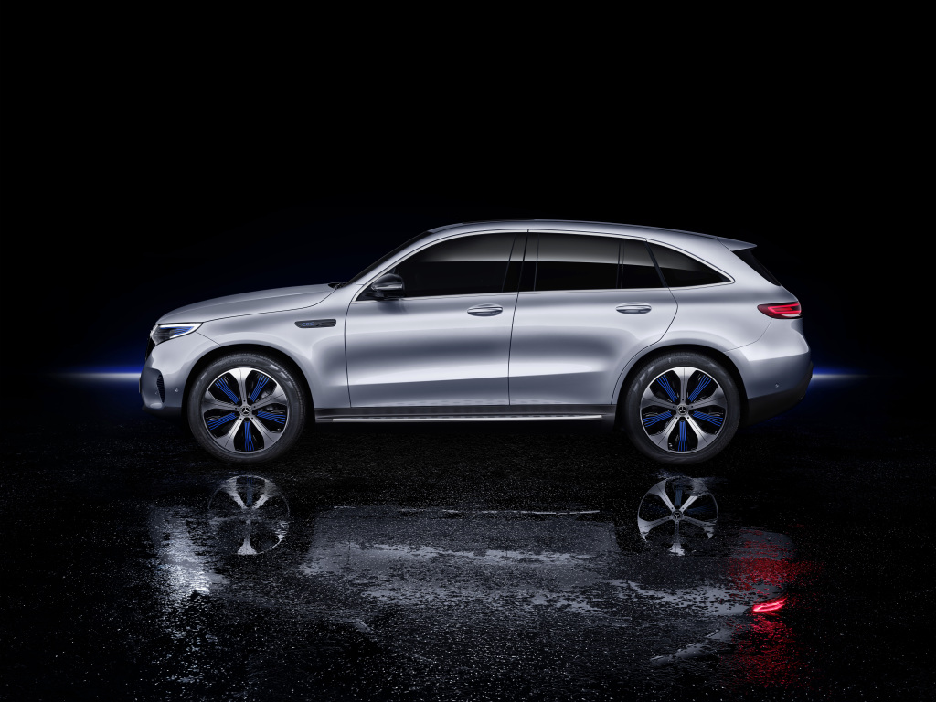 It was at the 2016 Paris Motor Show that Mercedes‑Benz first presented its new product and technology brand for electromobility. In mid-2019 the time has now come: The EQC (combined power consumption: 22.2 kWh/100 km; combined CO2 emissions: 0 g/km, provisional figures)1 is the first Mercedes-Benz vehicle to be launched under the EQ brand. With its seamless, clear design and colour highlights typical of the brand, it is a pioneer for an avant-garde electric look while representing the design idiom of Progressive Luxury. With respect to quality, safety and comfort the EQC is the Mercedes-Benz among electric vehicles, and highly convincing in the sum of its attributes. These are accompanied by dynamic performance, thanks to two electric motors at the front and rear axles with a combined output of 300 kW. A sophisticated operating strategy enables an electric range of more than 450 km according to NEDC (provisional figure)1. EQ also offers comprehensive services with Mercedes me, and makes electromobility convenient and suitable for day-to-day motoring. The EQC also symbolises the start of a new mobility era at Daimler.