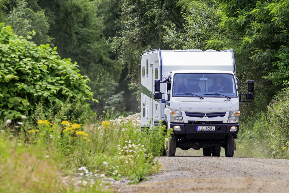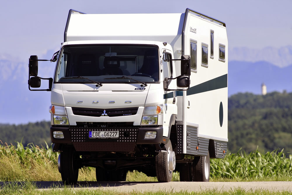 The Bimobil EX 460 camper van based on the robust Fuso Canter 4×4 is the perfect vehicle for discovering the world, even off the beaten track. The high-traction all-wheel-drive light-duty truck provides the ideal basis for long-distance campers and expedition vehicles. Fuso is a Daimler Trucks brand which operates successfully worldwide.
