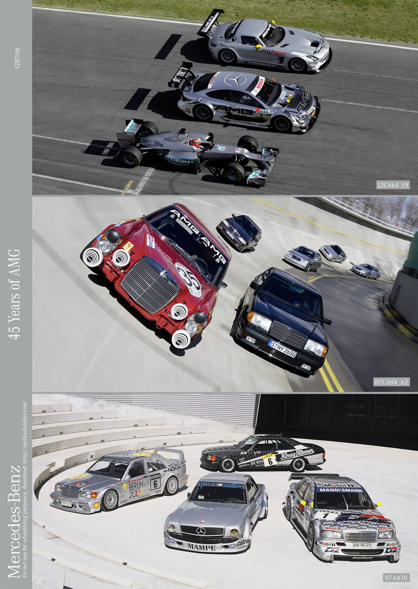 With its roots seated firmly in motorsport, the AMG performance brand has been at home on the race track for decades – from its position as the most successful brand in the history of the DTM, through to its global commitment to customer motorsport at the highest level with the SLS AMG GT3. Having secured 26 victories and the FIA GT3 European championship, the SLS AMG GT3 was the most successful newcomer in the 2011 motorsports season. When it comes to Formula 1, AMG has been an official partner for 17 years, and has been helping to ensure that safety is maintained on the racing circuits by providing the Official F1™ Safety Car and the Official F1™ Medical Car since 1996. And since the start of 2012 the MERCEDES AMG PETRONAS Formula 1 team with Nico Rosberg and Michael Schumacher has also been lining up on the starting grid too.