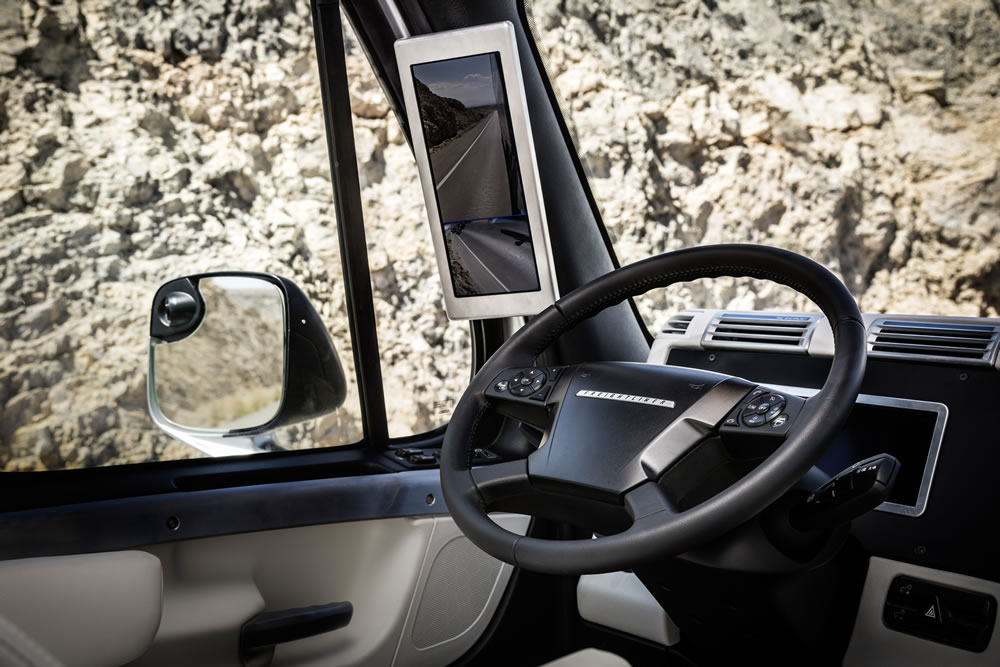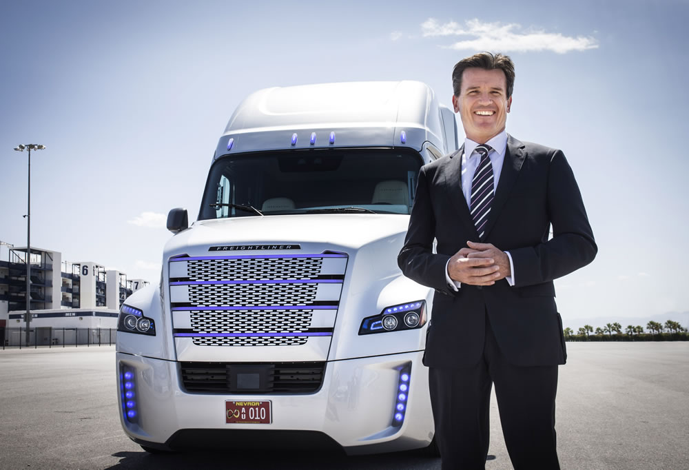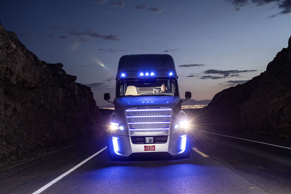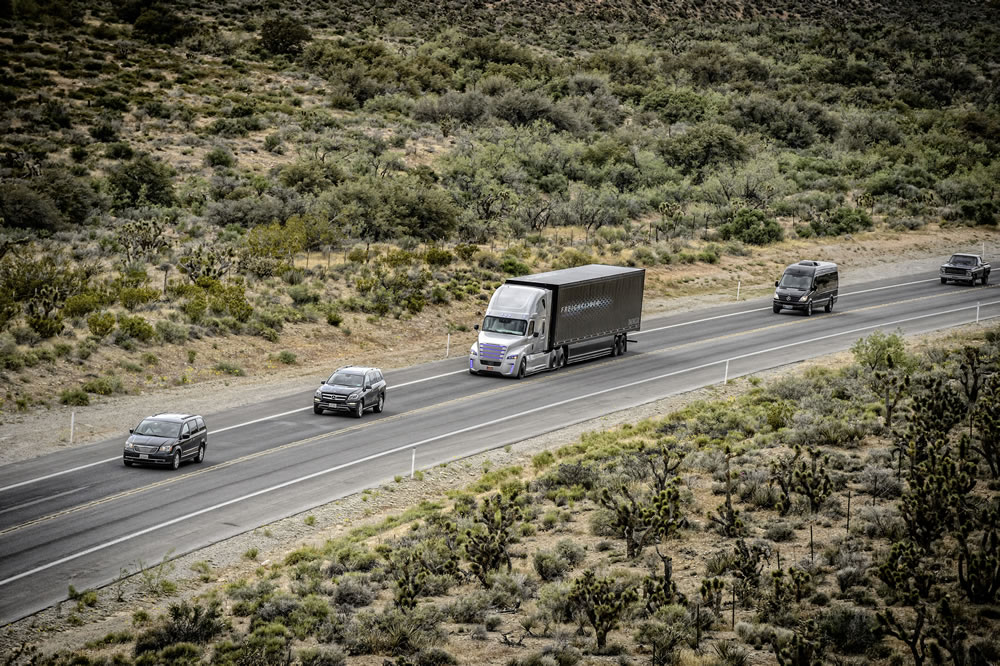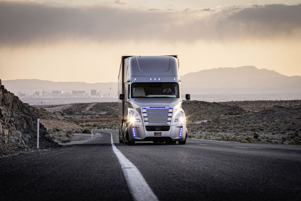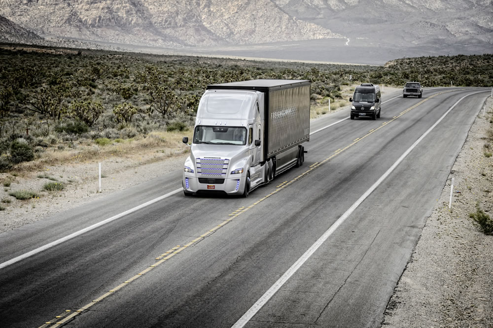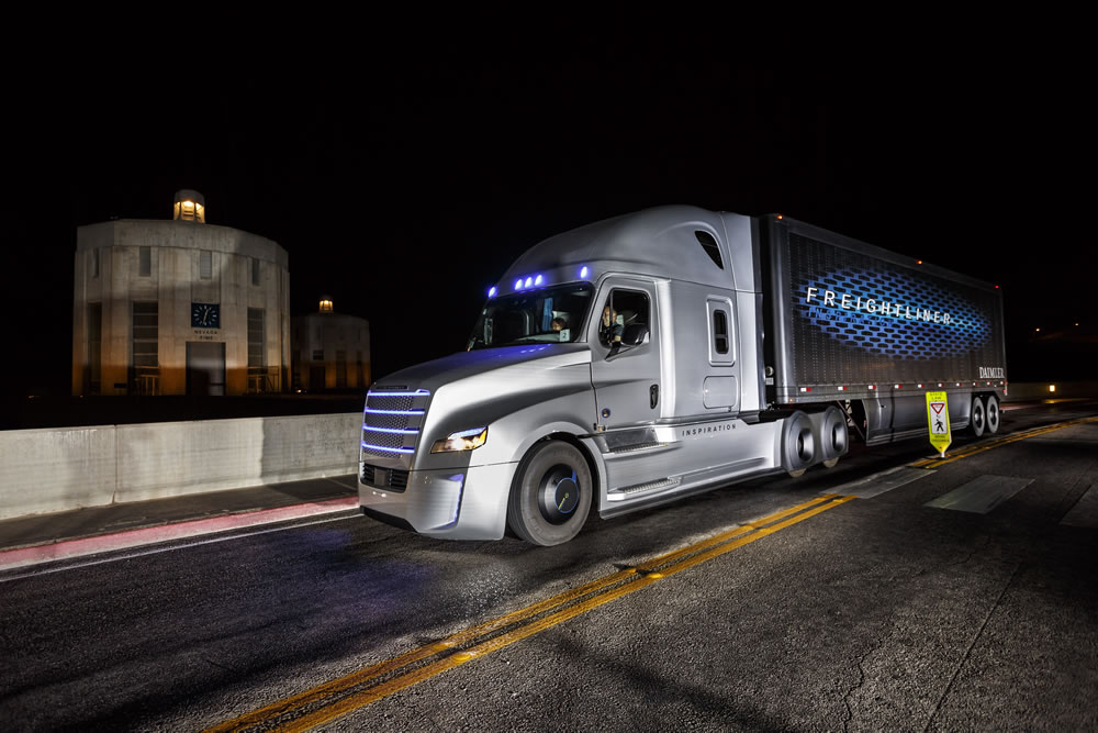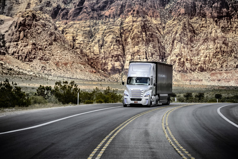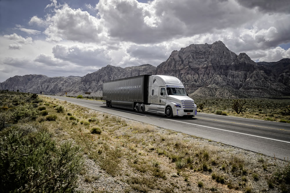 Freightliner Inspiration Truck, it is the first autonomous driving truck licensed for public roads in Nevada.