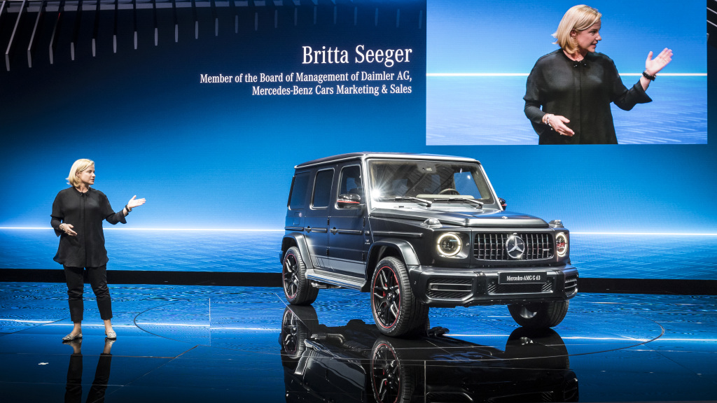 Britta Seeger, Member of the Board of Management for Mercedes-Benz Cars Marketing& Sales presenting the new Mercedes-AMG G 63, the new generation of the off-road legend by Mercedes-AMG.;fuel consumption combined: 13.1 l/100 km; CO2 emissions combined: 299 g/km*