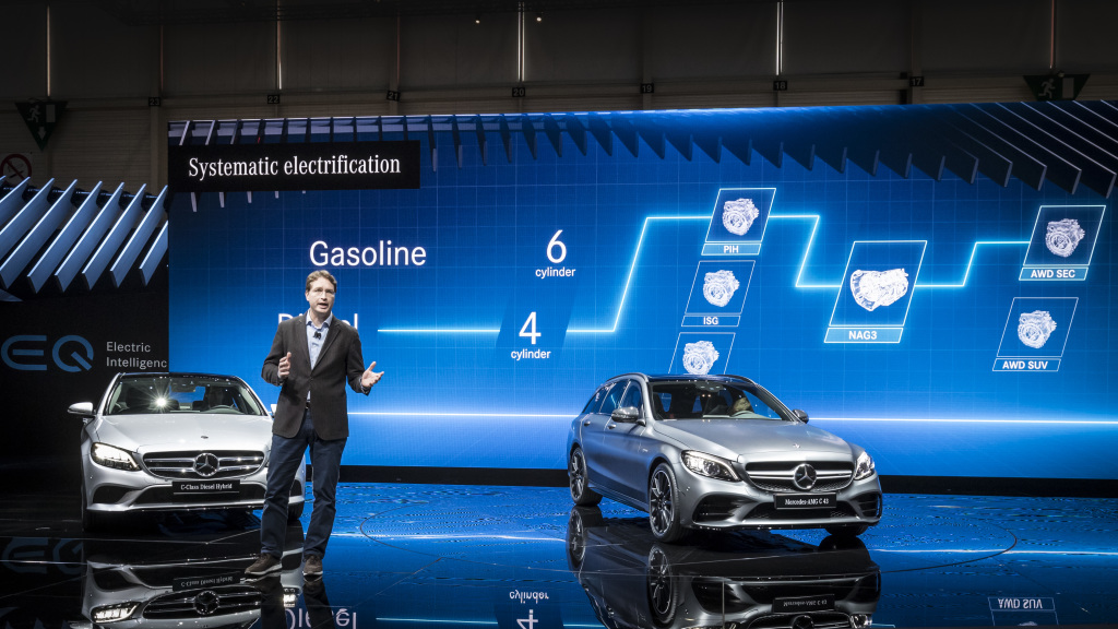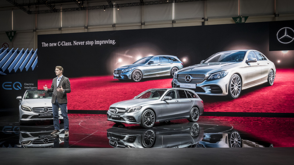 Ola Källenius, Member of the Board of Management responsibility for Group Research & Mercedes-Benz Cars Development is presenting the extensively redesigned C-Class.The bestseller with the three-pointed star appears with new, even more efficient engines. Also on show for the first time is a pre-production version of the first plug-in diesel hybrid, which is set to feature in both the C-Class and the E-Class. The new Mercedes-AMG C 43 (fuel consumption combined: 9.4-9.1 l/100 km; CO2 emissions combined: 214-209 g/km* 1) guarantees compelling performance.