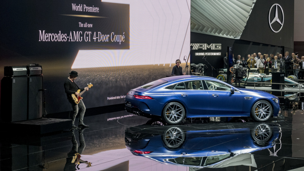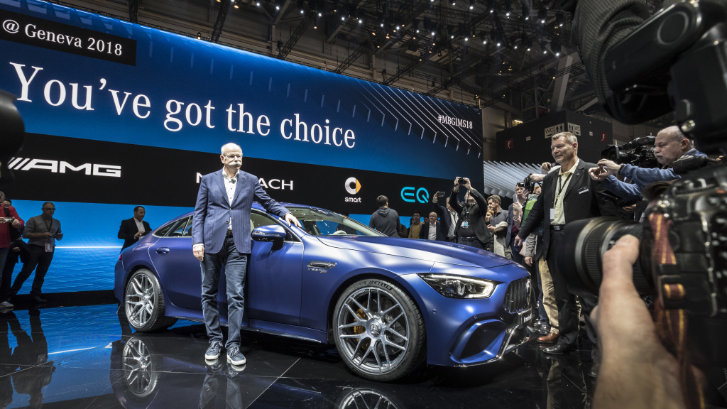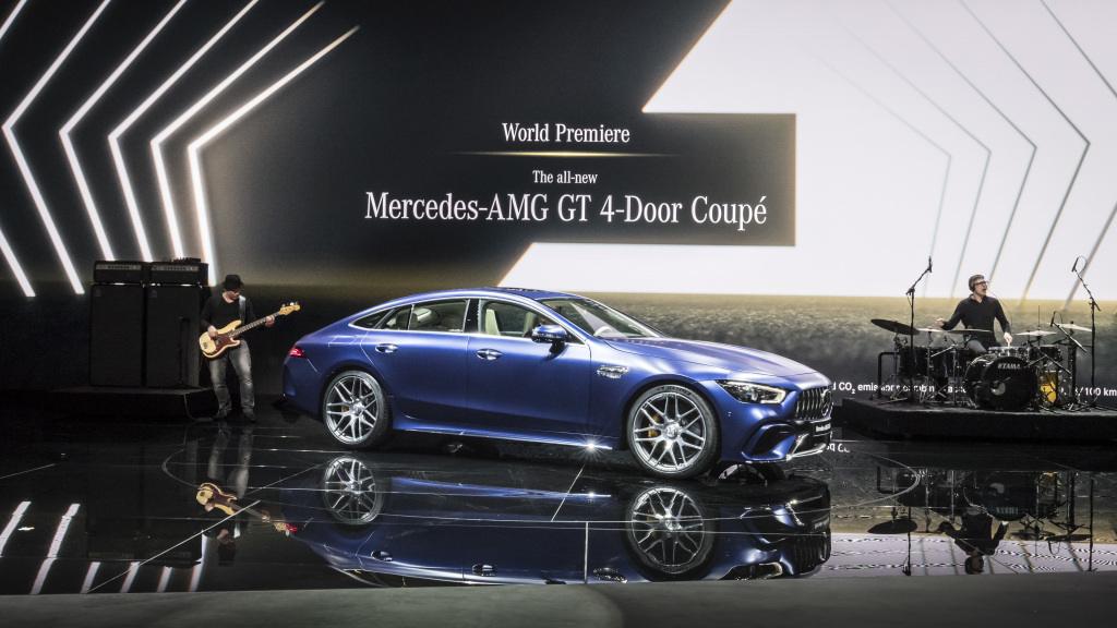 World premiere of the Mercedes-AMG GT 4-Door Coupé presented by Dr. Dieter Zetsche, Chairman of the Board of Management of Daimler AG and Head of Mercedes-Benz Cars: More space, more power, more goose pimples – the new Mercedes-AMG GT 4-Door model delivers driving experiences in new dimensions and extends the AMG model family. The new coupé is the first four-door sports car from Affalterbach and draws directly on the legendary SLS and AMG GT models of success. As another vehicle developed autonomously by Mercedes-AMG it combines unique design, high comfort and outstanding sports car engineering with an athletic, four-door fastback