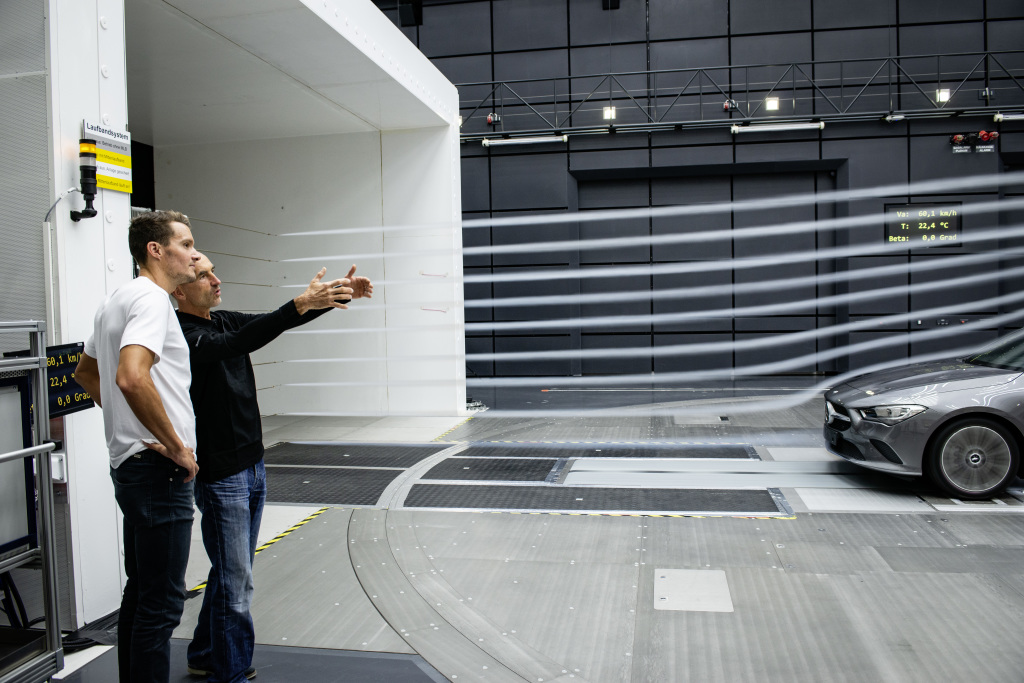 Fresh wind for saving fuel: for three decades now, the aerodynamics engineers at Mercedes-Benz have been setting one record after another. The world record for series production vehicles is currently held by the new A-Class Saloon with a cd value of 0.22 and a drag of less than 0.49 m2. It thus defends the original world record set by the CLA Coupé, the new model of which achieves 0.23 cd, still an outstandingly good figure.