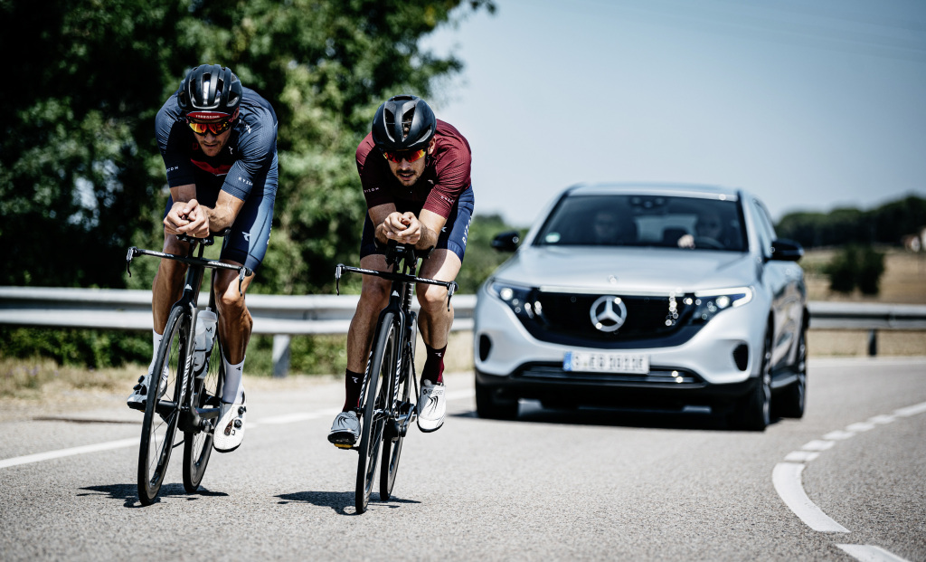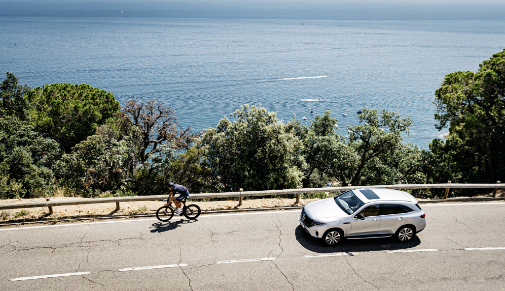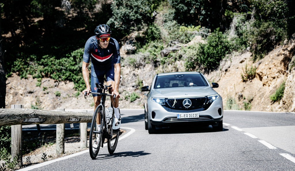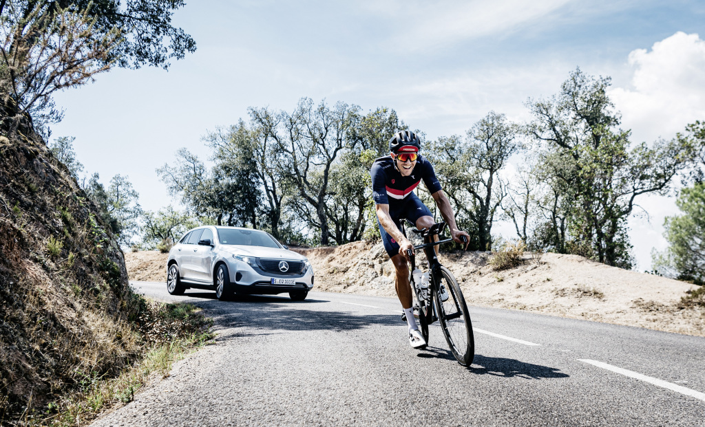Jan Frodeno is putting the EQC Edition 1886 to intensive use in Girona. When he is not at the wheel himself, such as on his morning drive to the sea for swimming training, his physiotherapist accompanies him in it, mostly for cycling training. The EQC is impressive in all disciplines: the electric vehicle offers the familiar high comfort, the dynamism and the quality of a Mercedes-Benz with zero local CO2 emissions and a range of more than 450 kilometres, which makes it ideal for everyday use. Then there are the avant-garde aesthetics and a multitude of user-friendly services. The EQC thus marks Mercedes-Benz’s departure into a new era of electric mobility. So Jan Frodeno is more than pleased with his climate-friendly training partner: “I’ve been pleasantly surprised by the EQC. It offers unadulterated dynamism and driving pleasure with its brilliant acceleration. All this with a good conscience, because thanks to the two electric engines there are zero local CO2 emissions.” A further advantage from the athlete’s point of view is the lack of background noise. “The EQC is the perfect support vehicle – for instance, you don’t hear it at all when climbing a pass in the Pyrenees. This means that nothing distracts me from my training and, above all, I can enjoy the landscape and the peace and quiet in the process.” Jan Frodeno has also been impressed by the many useful assistance systems and service functions of his emission-free companion. For example, alongside latest-generation driving assistance systems, the EQC Edition 1886 offers an extensive service package with maintenance service, a collect and return service, a vehicle warranty extension, an optimised navigation system and charging management system.
