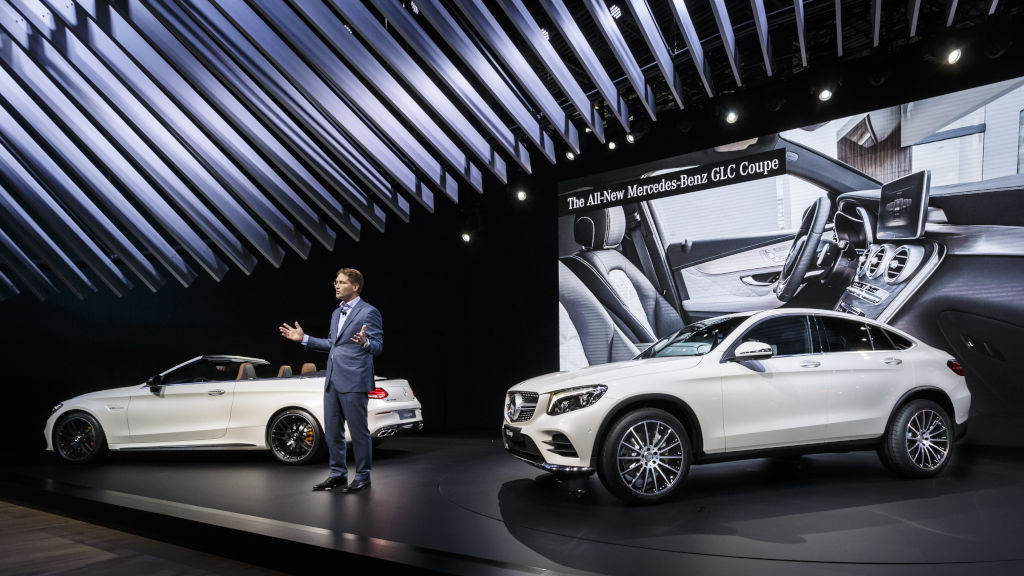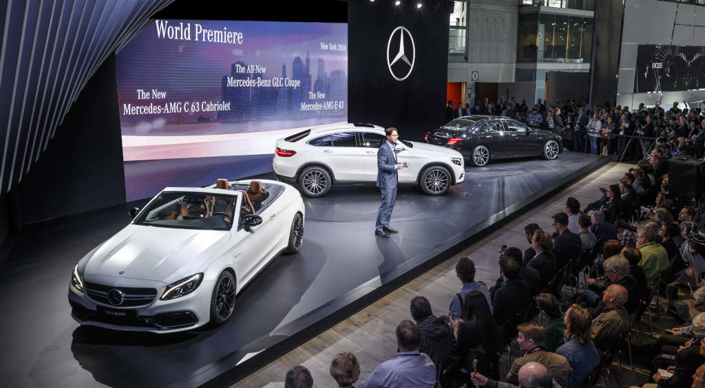 Mercedes-Benz at the 2016 New York International Auto Show. Ola Källenius, Member of the Board of Management of Daimler AG, Mercedes-Benz Cars Marketing & Sales, presenting the new Mercedes-Benz GLC Coupé