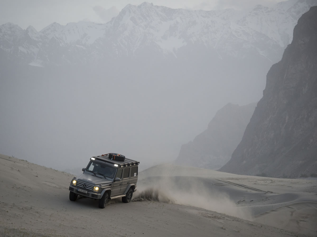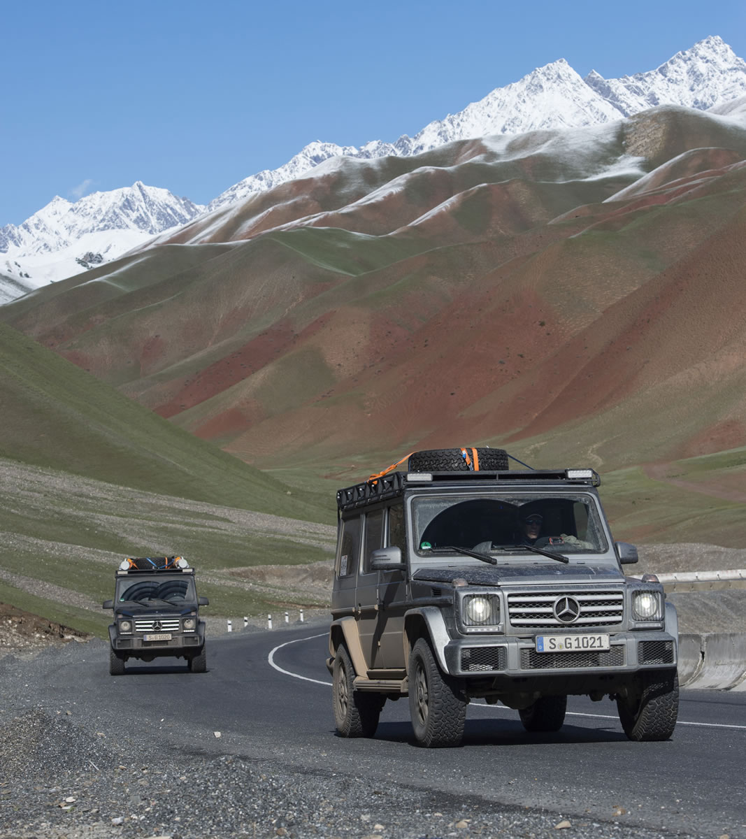 “Everybody should know what the world looks like, so that the desire arises to protect it. Accordingly I could hardly wait to set off on this new challenge. Normally I do not use vehicles on my adventures. But this time the Mercedes-Benz G-Class made it possible for me to reach even the remotest areas. The off-road capability and innovative technology of this car are simply unbelievable. The car is my perfect, motorised alter ego,” says Mike Horn. On 14 May 2015 he started off on his K2 expedition from Château-d’Oex in Switzerland. On the way to the Hindu Kush the extreme sportsman took the cult vehicle amongst off-roaders through Germany, Poland, Lithuania, Latvia, Russia, Kazakhstan, Uzbekistan, Tajikistan, Kirgizistan, China and Pakistan. The G-Class has been an ongoing success story for over 35 years, as it allows mobility at the very limits. Its compactness, ground clearance and off-road performance are unrivalled. It even remains undeterred by 100% gradients, 54 percent inclines and water up to 60 centimetres deep.