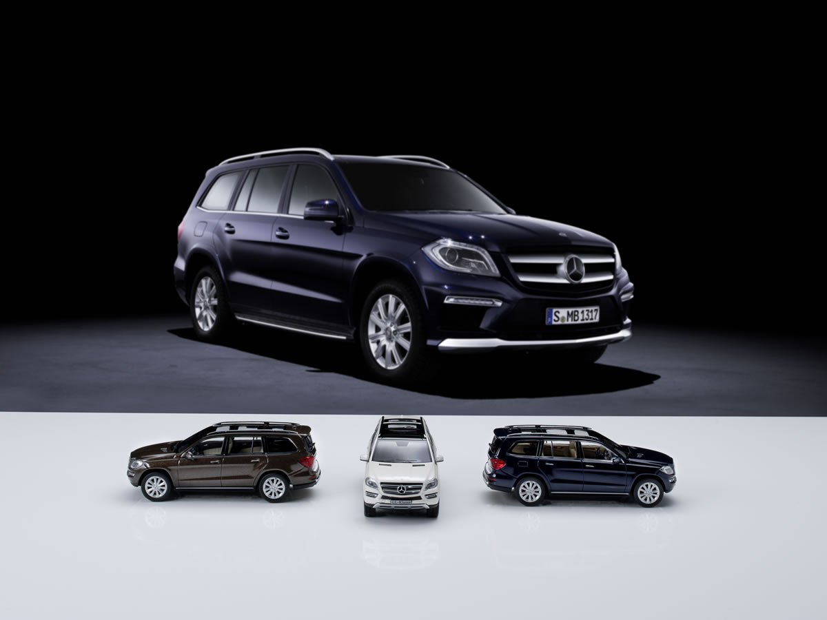 The Mercedes-Benz GL-Class, also known as the S‑Class amongst SUV’s, is now also available a few sizes smaller. In cooperation with Norev, Mercedes‑Benz is now offering the new GL‑Class as a true-to-original miniature. The miniatures designed using the original CAD data and assembled by hand are available in two scales and five original paint colours.