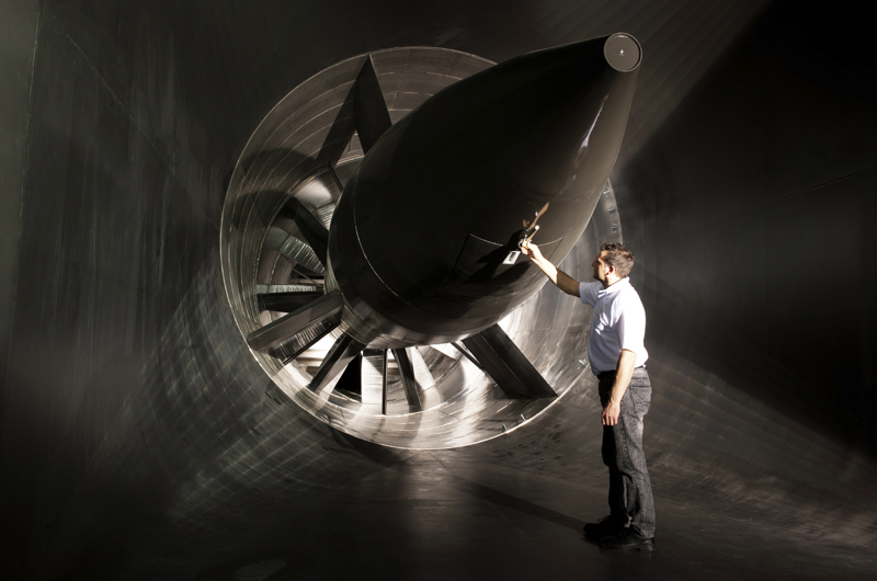 Wind: The huge fan is capable of simulating winds speeds of up to 265 km/h. Even at a wind speed of 100 km/h you are no longer able to stand upright. The fan is mounted on massive steel springs to protect the facility’s electronics from the slightest vibration.