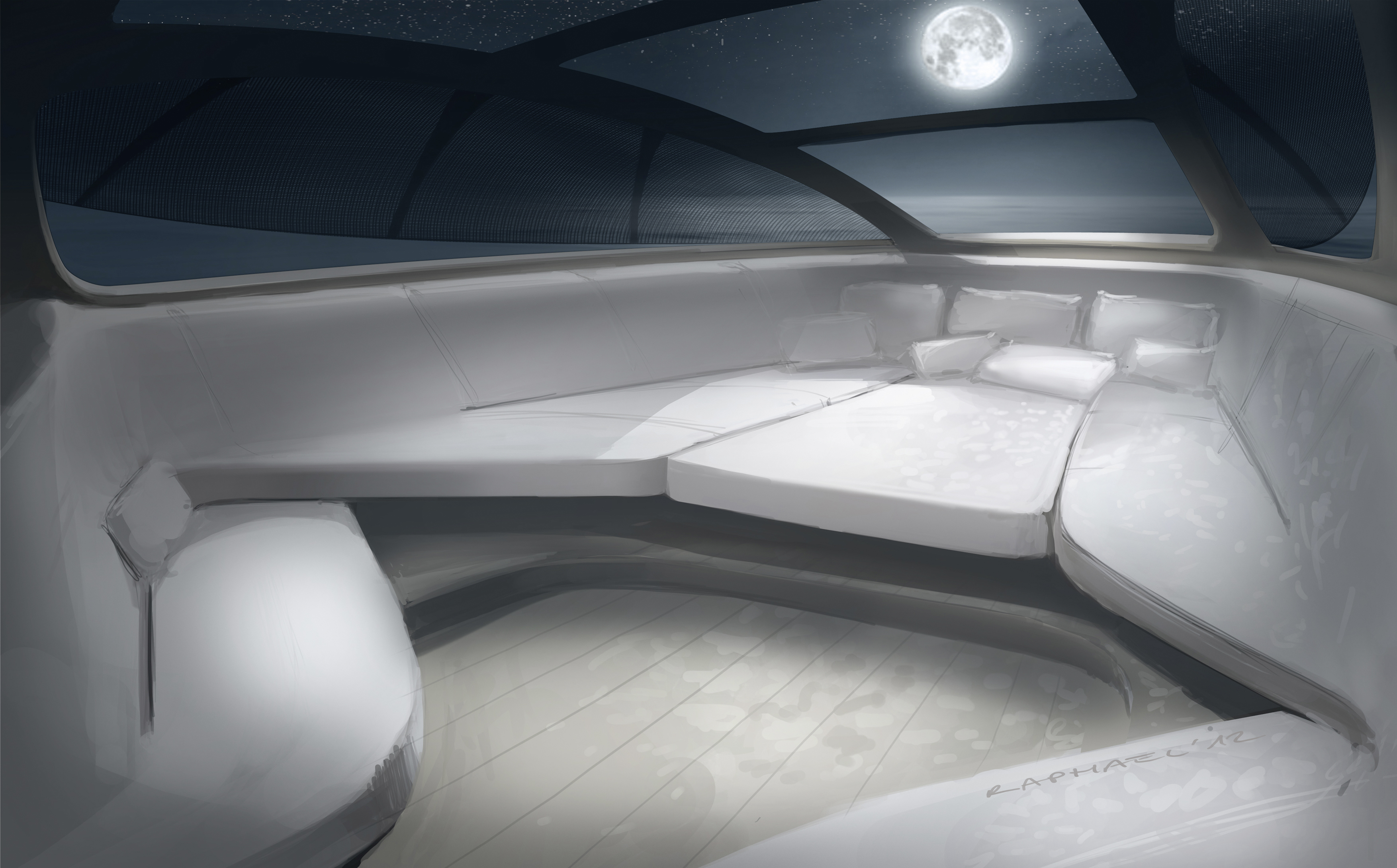 Mercedes-Benz Style Silver Arrows Yacht Interior at night