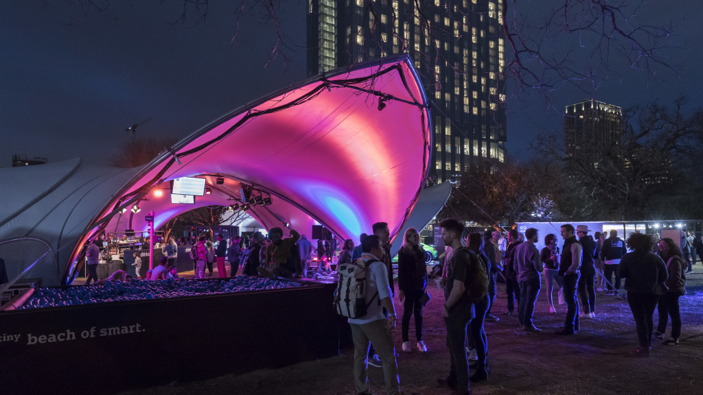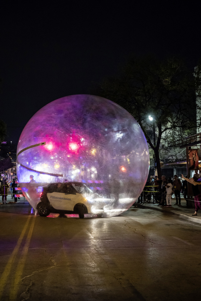From the early evenings into the first morning hours, the Mercedes-Benz Concept EQ drove through the streets of the city. People on Austin’s famous 6th Street were also wowed by another unusual appearance: an emission-free smart EQ fortwo rolling inside an inflated bubble. And music enthusiasts had a good time during the live concerts at the tiny house of smart.