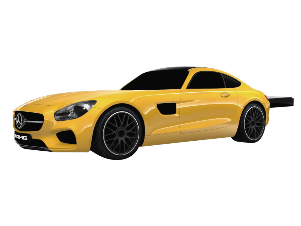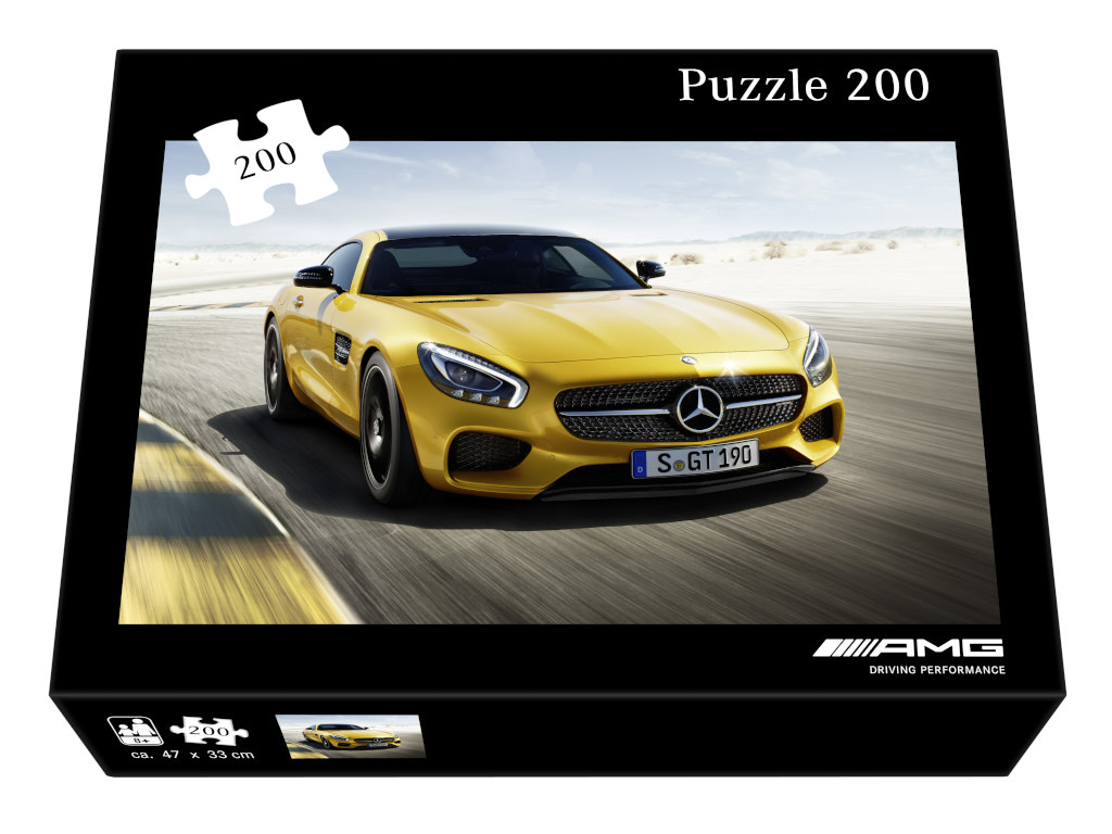 One of the particularly stylish personal accessories new to the portfolio is the 16 GB USB stick 2.0 in the shape of the Mercedes-AMG GT in solarbeam yellow. Those who prefer to build their own solarbeam yellow AMG GT, ideally together with the kids, should look no further than the new 200-piece jigsaw puzzle. Comprising 120 g/m2 linen-embossed photo paper on 1.9 mm blue jigsaw card and a four-colour print with varnish, the completed puzzle measures 470 x 330 mm.