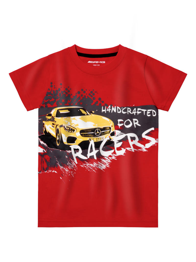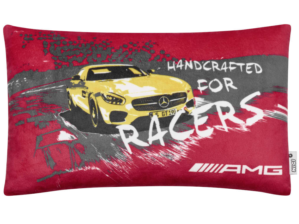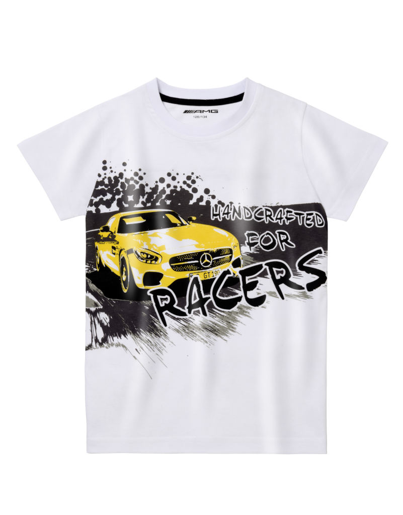 Handcrafted for racers, the new T-shirts for kids are brightly coloured in red or neutral in white, each adorned with a yellow Mercedes-AMG GT. Made from 100% combed single-jersey cotton and featuring a practical crew neck, they are exceptionally comfortable to wear. An AMG logo is printed on the back. The T-shirt is available in kid sizes 116/122 – 152/158. Based on the same look, the fluffy kid’s cushion is ideal for snuggling up to. Measuring approx. 43 x 25 cm, it is made of 100% polyester plush. Another favourite for juniors is of course the cap with adjustable metal clasp in a white/red design with embroidered AMG logo on the front.