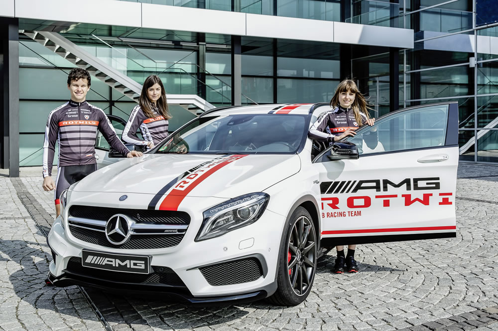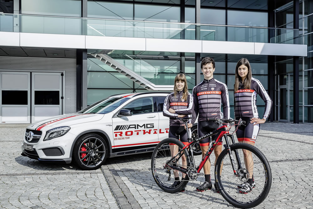 AMG, the performance brand within Mercedes-Benz, and Rotwild, the internationally renowned manufacturer of high-end mountainbikes, are intensifying their cooperation. The mountainbike professionals of the Rotwild team are entering the 2014 mountainbike season with AMG as a new name-giving sponsor. The team consists of the two U23 riders Lukas Baum and Sofia Wiedenroth (left), and the elite lady rider Nadine Rieder (rigth).