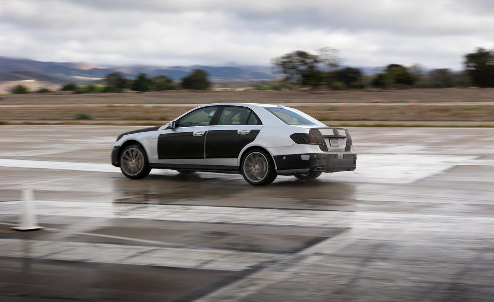 Of course, we wouldn’t bother with a new E63 if it received nothing more than differently creased sheetmetal. But this 2014 model will come with something that we’ve never before experienced on an AMG passenger car—all-wheel drive. Not only will the E63 have the Mercedes 4MATIC system, but that’s the only way it will come to America, although the rest of the world will still be able to order a rear-drive version.