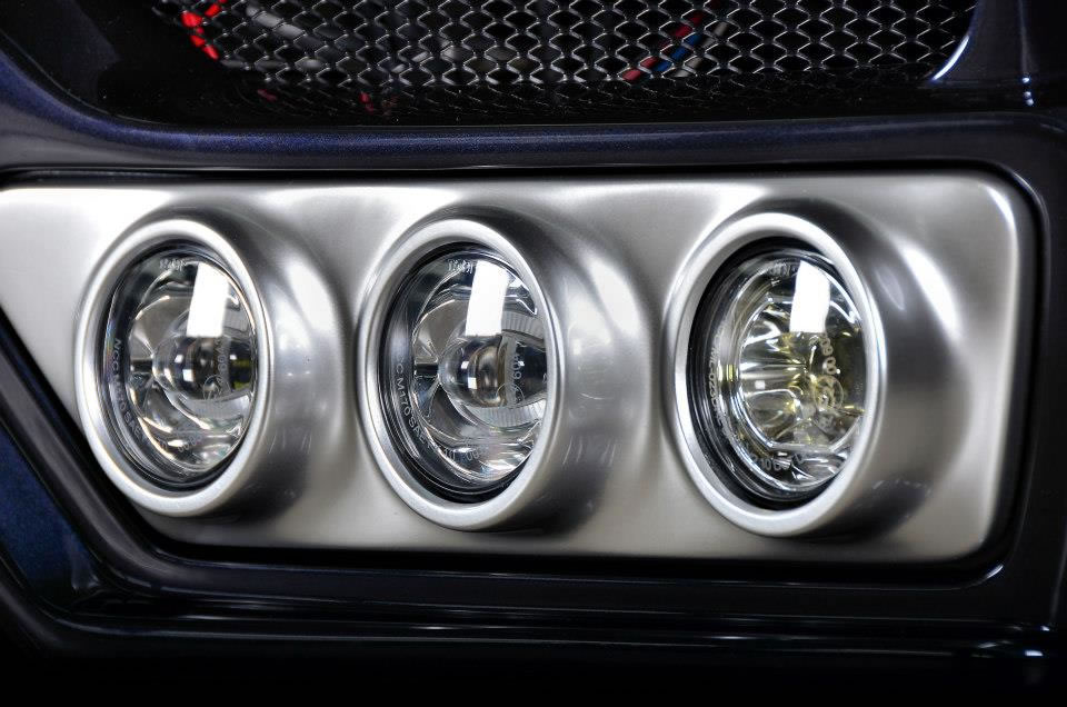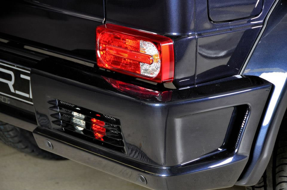 Also installed on the A.R.T. Mercedes G-Wagen is a LED triple beam lamp set, with two additional LED high beams and one LED daytime running light per side, premium High Bi-XENON headlamp system with integrated LED daytime running light. Also added on are additional air intakes in the front bumper, that channels the air flow for improved cooling of the brake system on the front axle, an aero engine hood, in bicolor design, with no less than 19 air intakes for improving the thermic conduction.