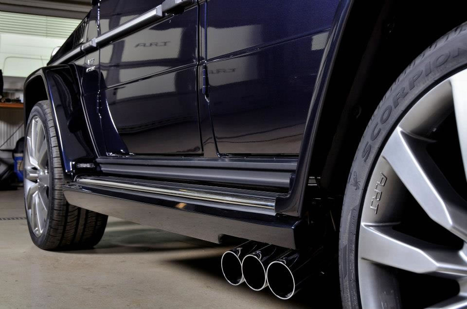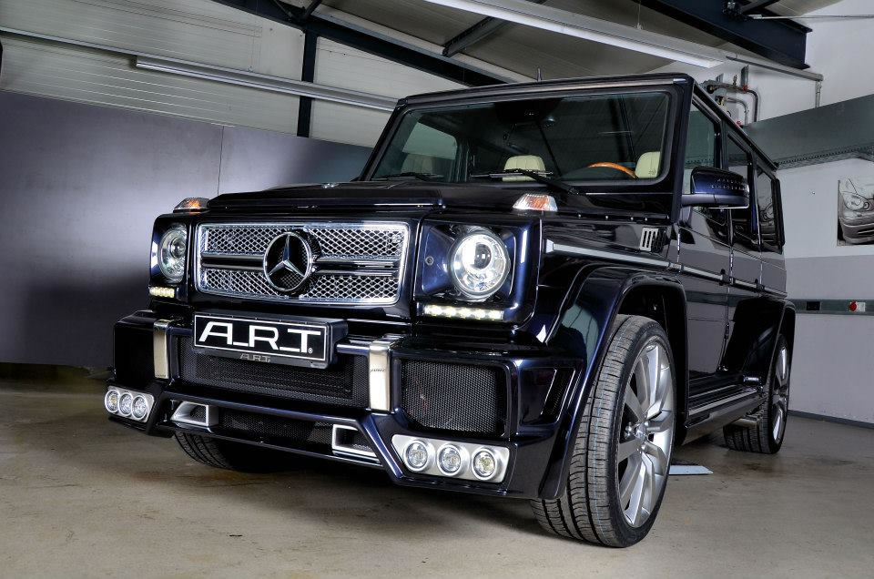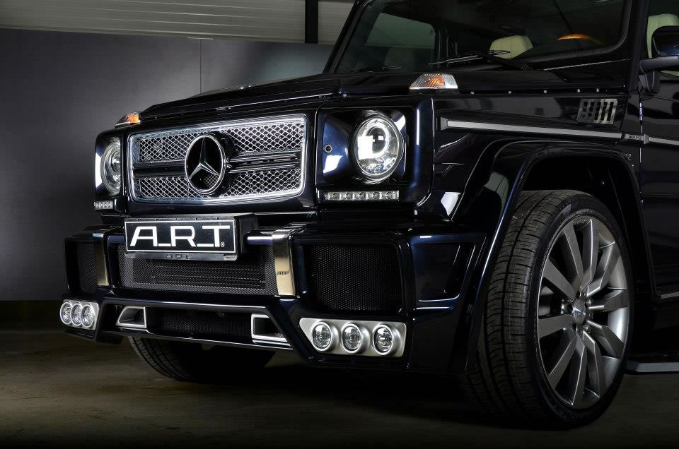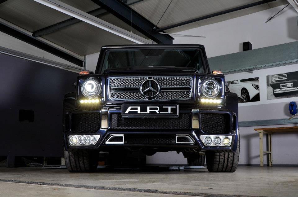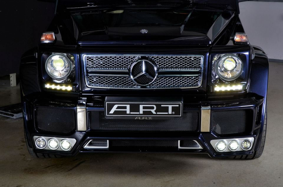 German tuner A.R.T. unveiled their latest wide body kit for the 2013 Mercedes G63 AMG and G65 AMG. The kit includes a new front bumper with integrated front spoiler, a smooth pair of running board covers with LED underfloor illumination, a set of grand fender flarings with LED running board illumination and a rear bumper with double retroreflector units.