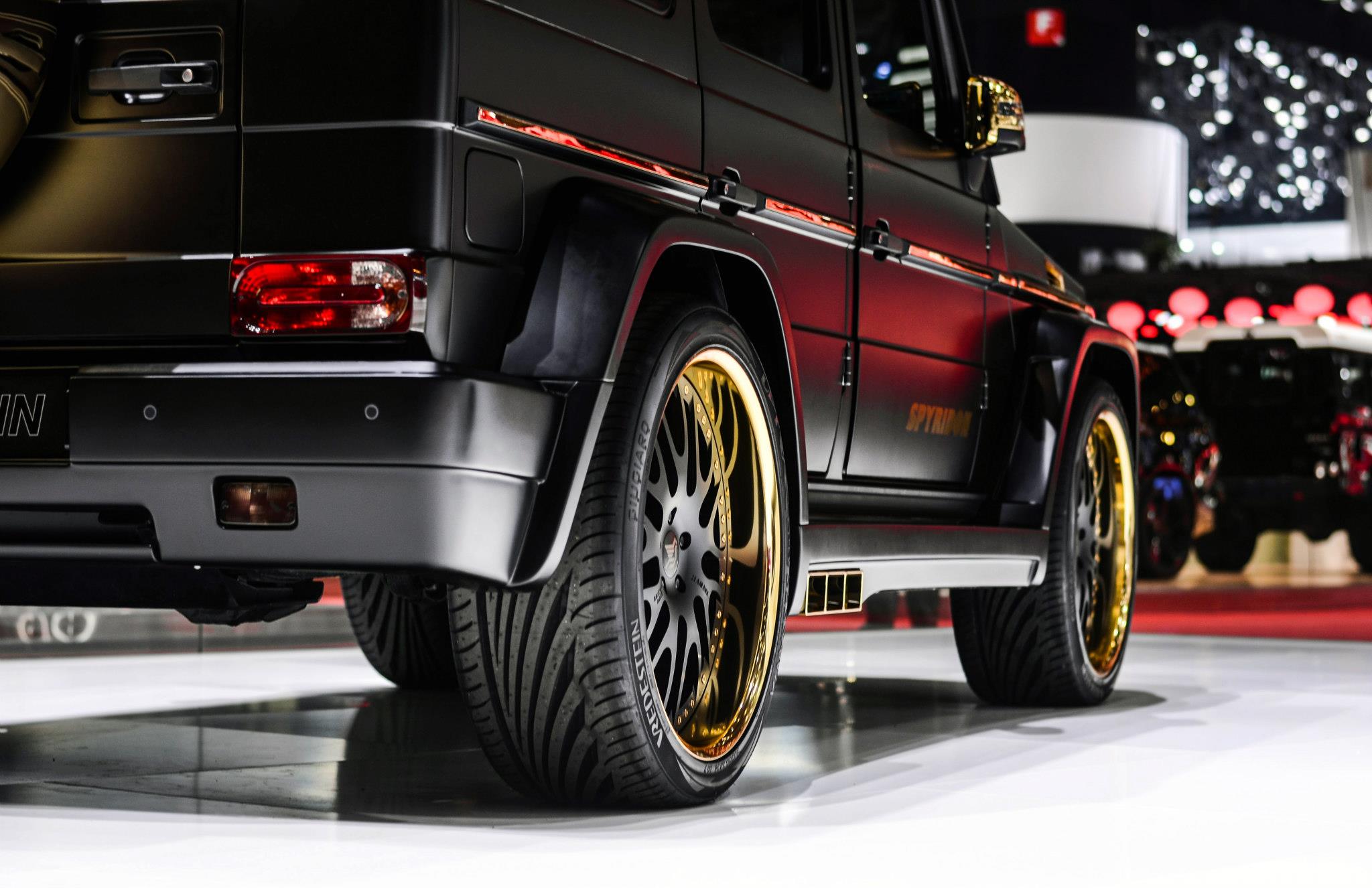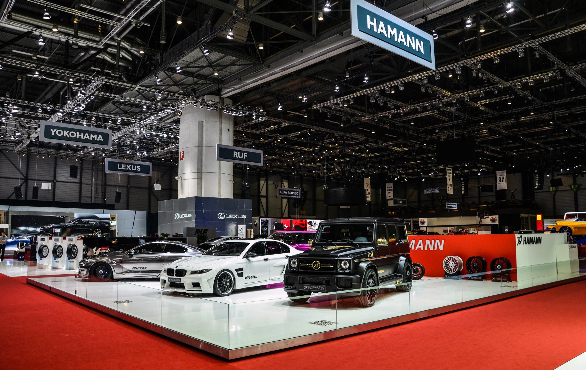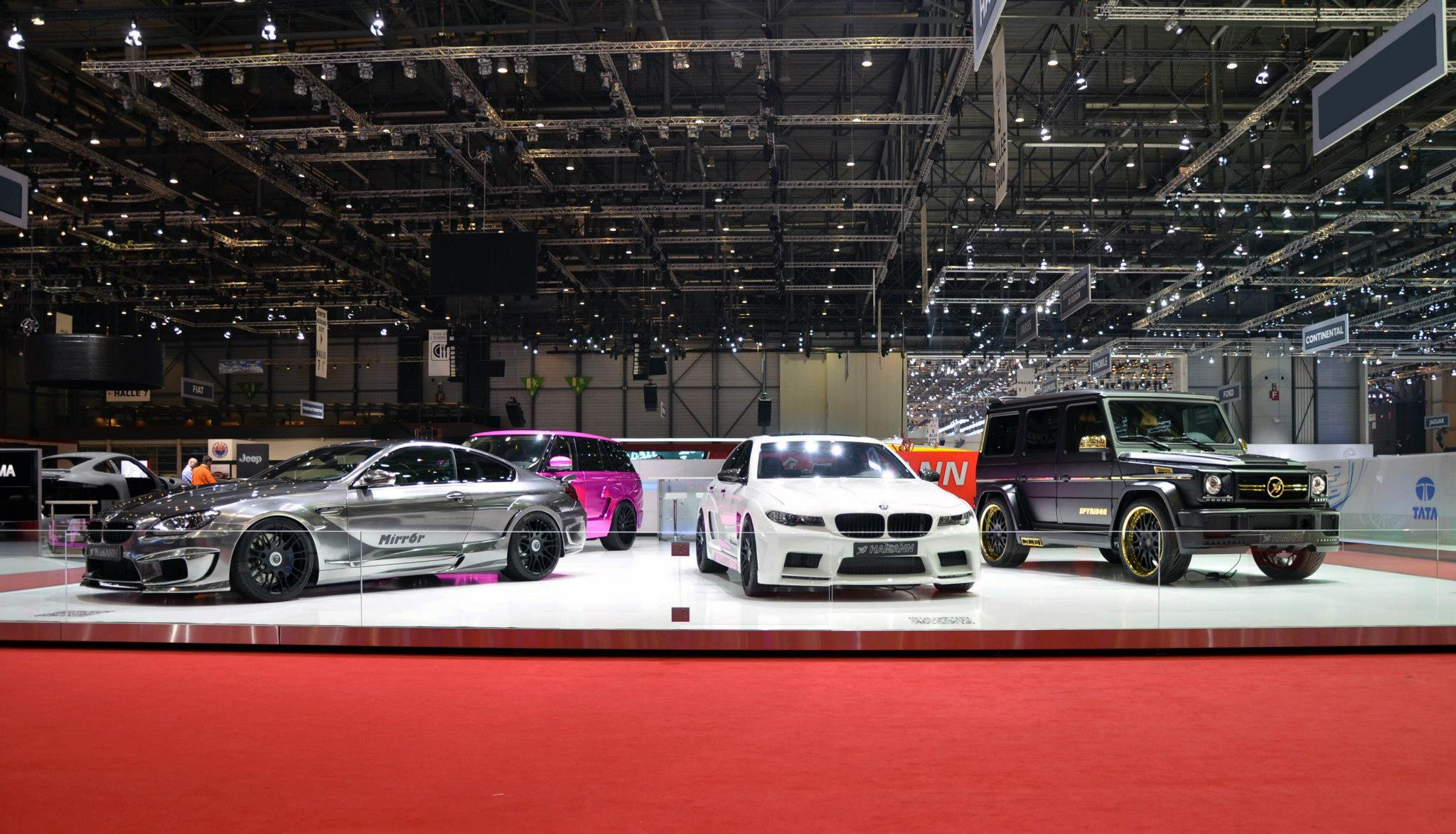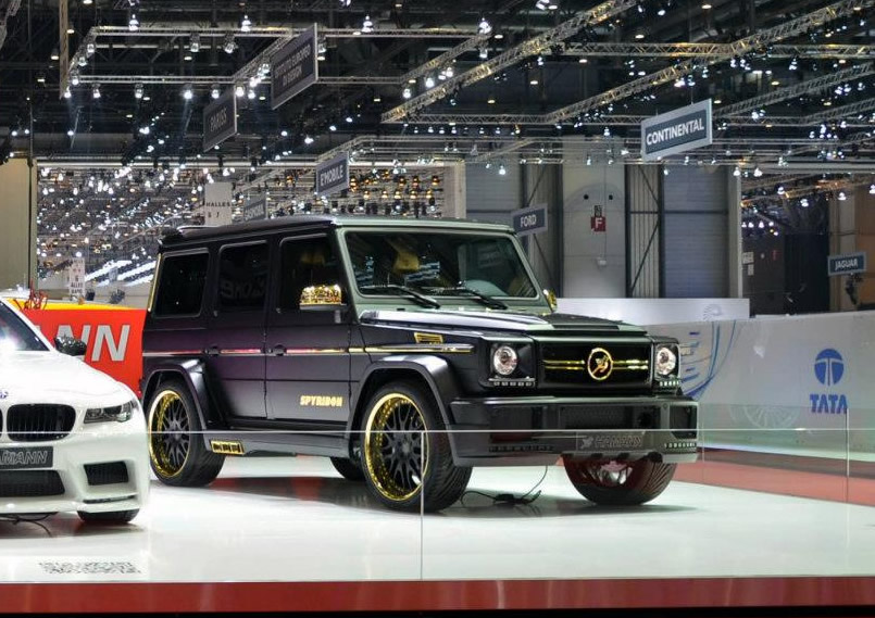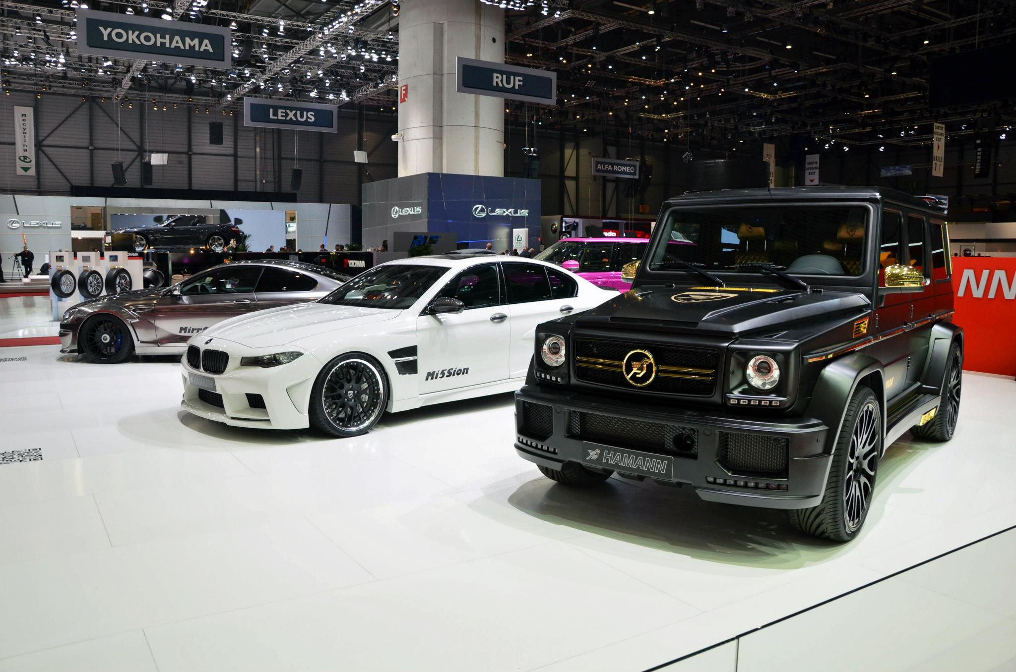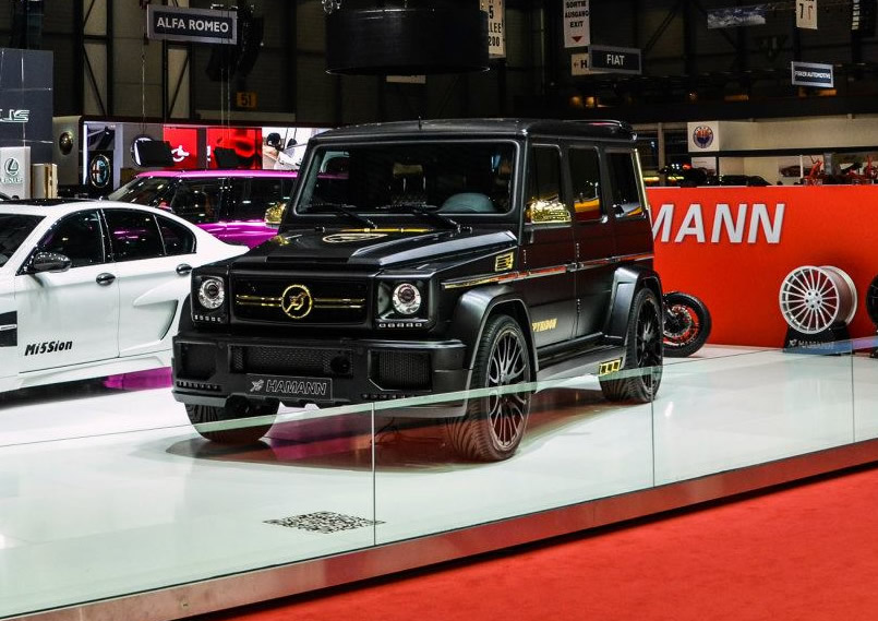 It is not only the car brands that are premiering new vehicles at the Geneva Motor Show, tuners are taking advantage of the internationally covered stage as well. One of those tuners is none other than Hamann with their Hamann Spyridon Mercedes G65 AMG. Hamann’s upgrades are available for both the Mercedes G65 AMG and the G63 AMG models. Below you can see photos of the Hamann Spyridon on teh 2013 Geneva Motor Show floor alongside Hamann’s other, more brightly colored creations.