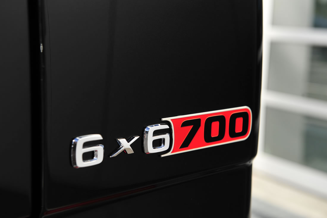 BRABUS lends the most exclusive G-Class of all times even more punch: powered by a 5.5-liter V8 Biturbo with BRABUS B63S – 700 engine tuning producing 515 kW / 700 hp (690 bhp), the six-wheel drive powerhouse weighing in at around four tons sprints from rest to 100 km/h (62 mph) in just 7.4 seconds. The top speed is limited electronically to 160 km/h (100 mph) due to the 37-inch off-road tires.