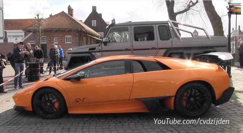A massive Mercedes-Benz G63 AMG 6×6 was spotted towering over a Lamborghini Murcielago LP670-4 SuperVeloce at the Borderrun last weekend in the Netherlands. The rare sighting of the G63 AMG 6×6 and the Murcielago SV left us wanting a comparison of the two very different yet very badass cars.