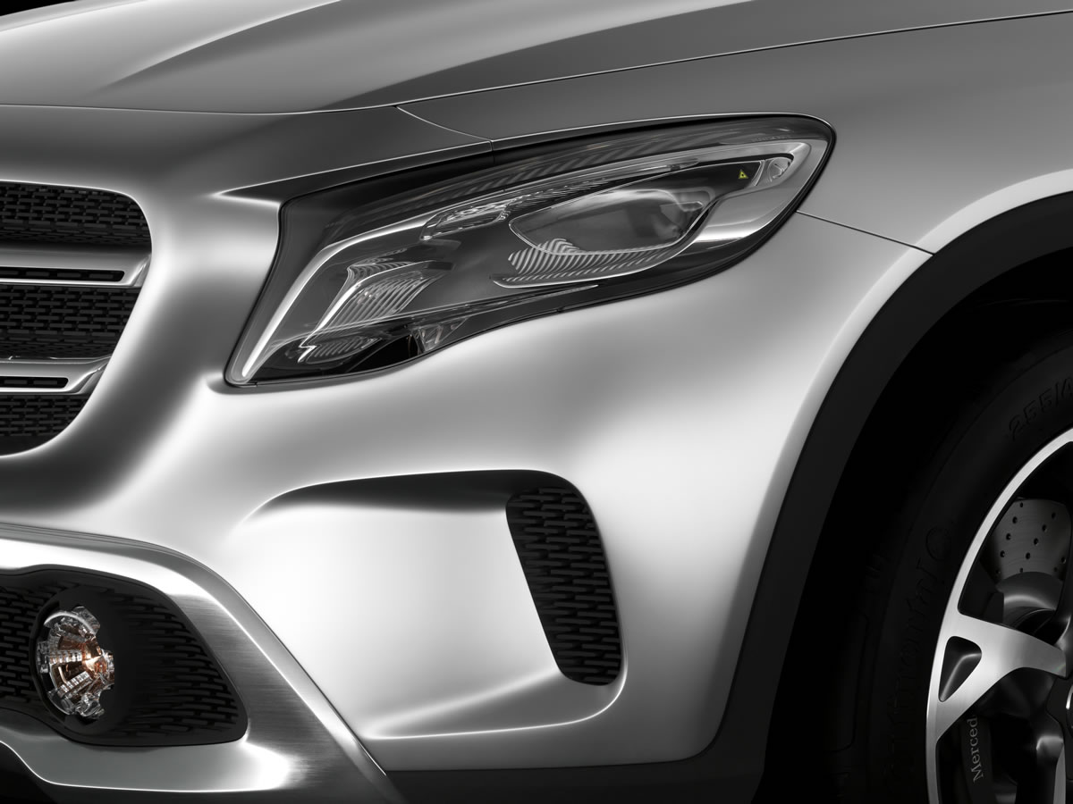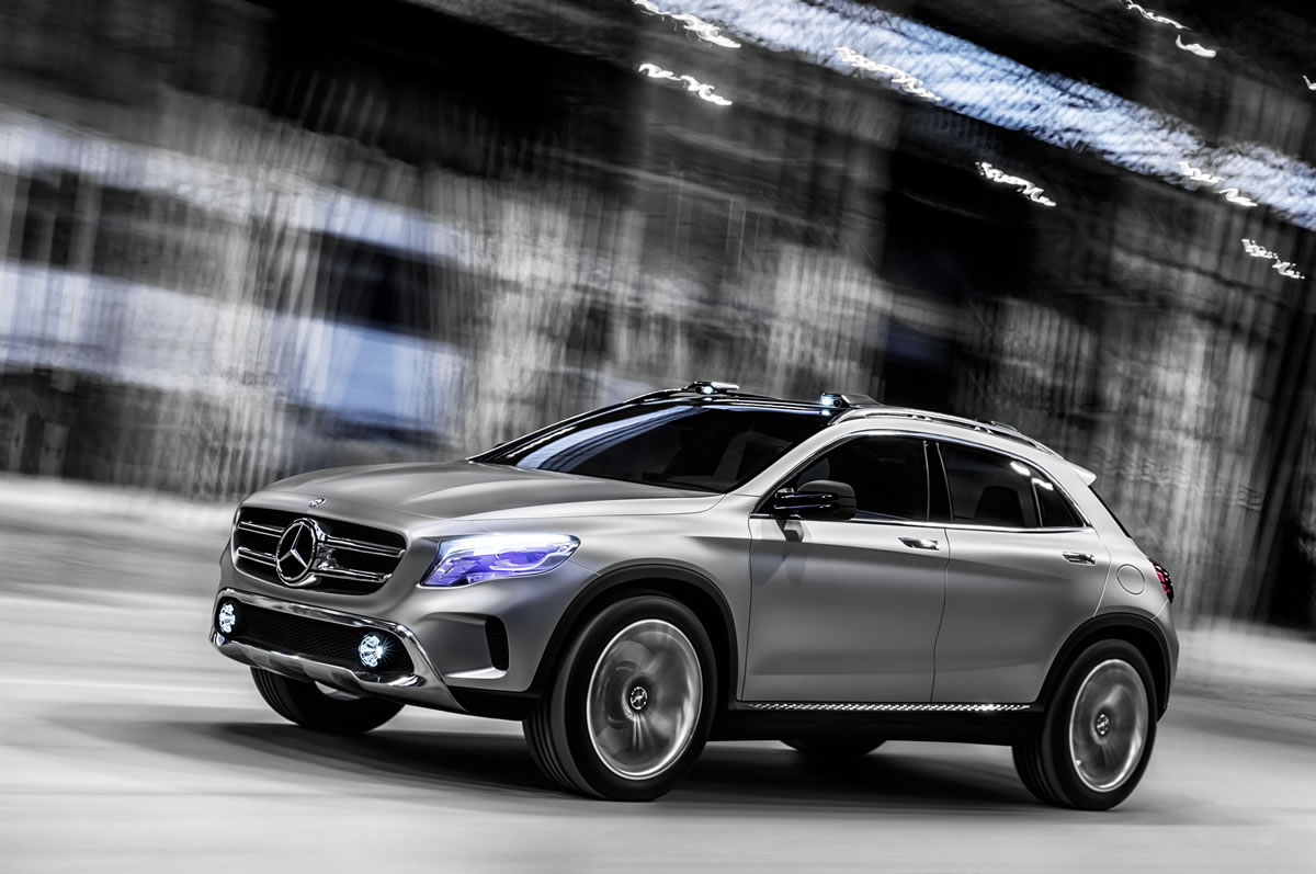Mercedes-Benz will be showing off a brand new compact premium-class SUV at the “Auto Shanghai” motor show, beginning on Sunday, April 21 and running through April 29, in the form of its all-new Concept GLA. With the Concept GLA, Mercedes combines dynamic styling with recreational purpose. Under the hood of the new GLA concept, measureing length/width/height: 4383/1978/1579 millimetres, sits a four-cylinder turbocharged petrol engine rated at 155 kW (211 hp) with a displacement of 1991 cc. Its power is transmitted to the road via the 7G-DCT dual clutch automatic transmission and 4MATIC all-wheel drive. A new approach is taken here in the form of headlamps featuring laser technology: these not only shine more light on the road, but also function as projectors.