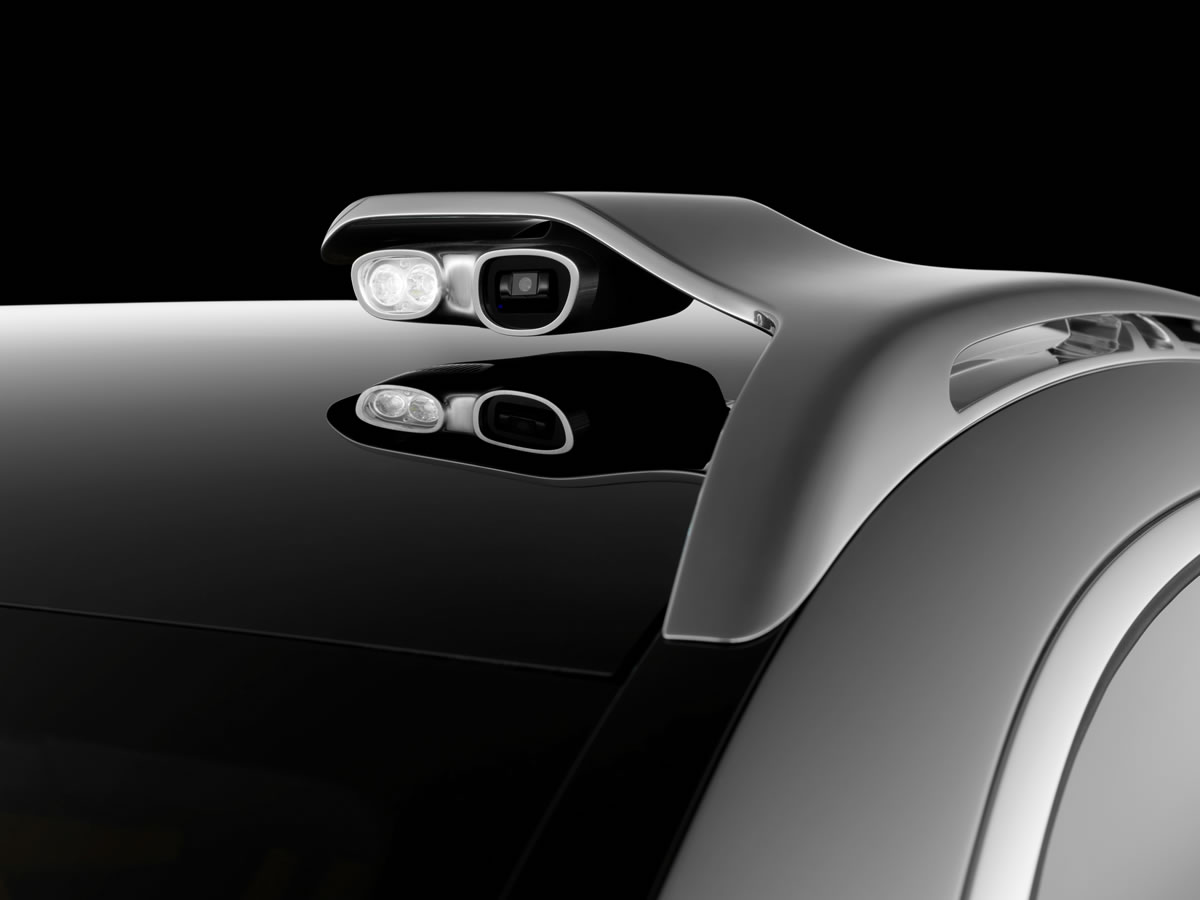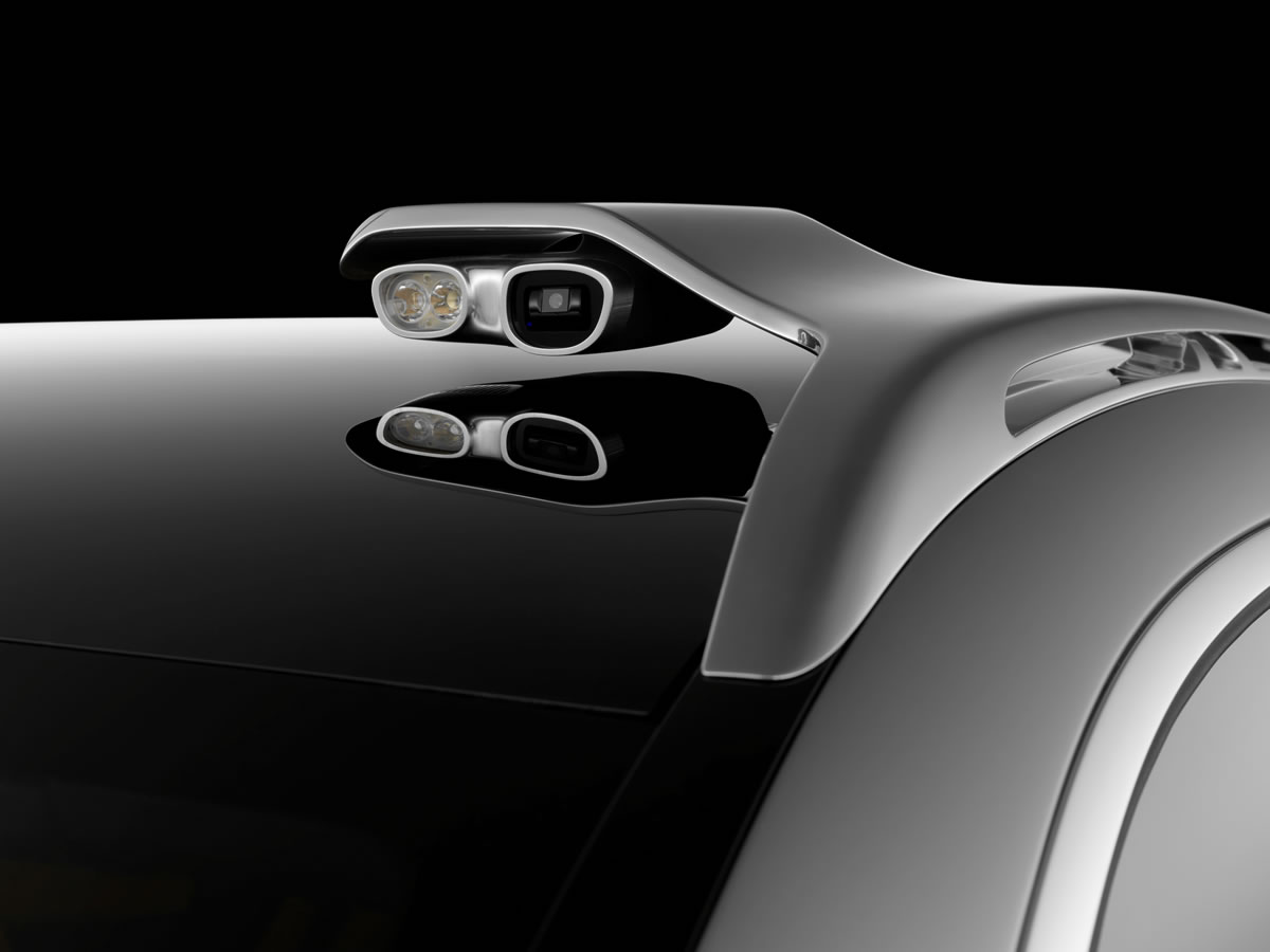 Alternatively, the action can be produced live. The Concept GLA is fitted with two cameras, housed in the front roof rail. And these can be used for far more than just 3D images taken as the Concept GLA drives along: the HD cameras can be removed and, for example, fitted to a mountain bike helmet. An additional lamp unit in each camera ensures that the lighting is right, whatever the situation. As an alternative to the projection option, films may also be viewed inside the car on the COMAND Online screen.